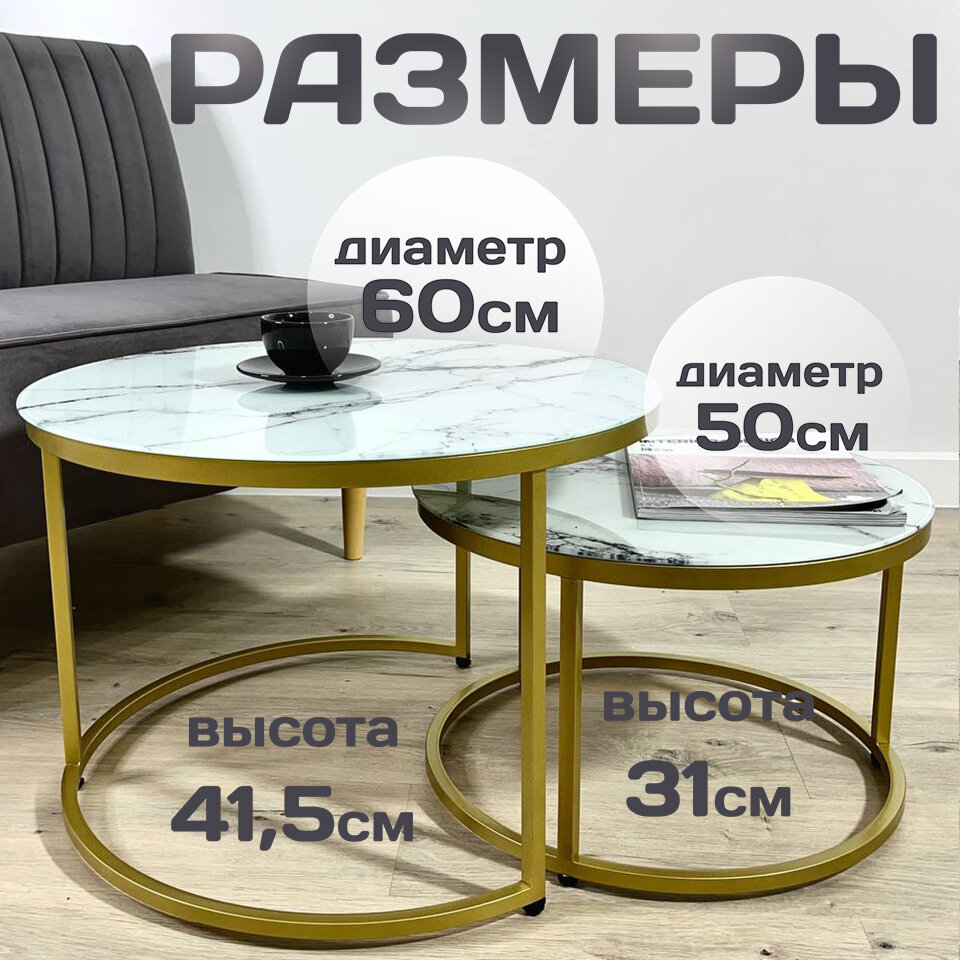 Купить Журнальный стол "Мартин" комплект круглый, 60х60х40 см Мрамор Белый с золотыми опорами