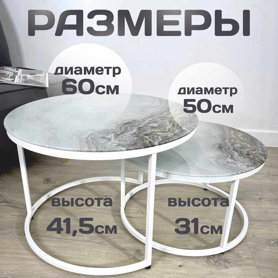 Журнальный стол "Мартин" комплект круглый, 60х60х40 см Мрамор Сахара с белыми опорами