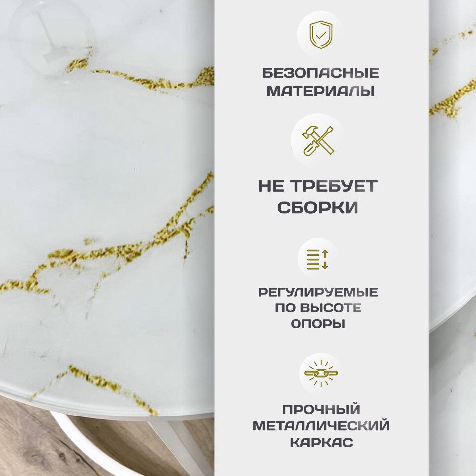 Журнальный стол "Мартин" комплект круглый, 60х60х40 см Мрамор Белый с золотыми опорами