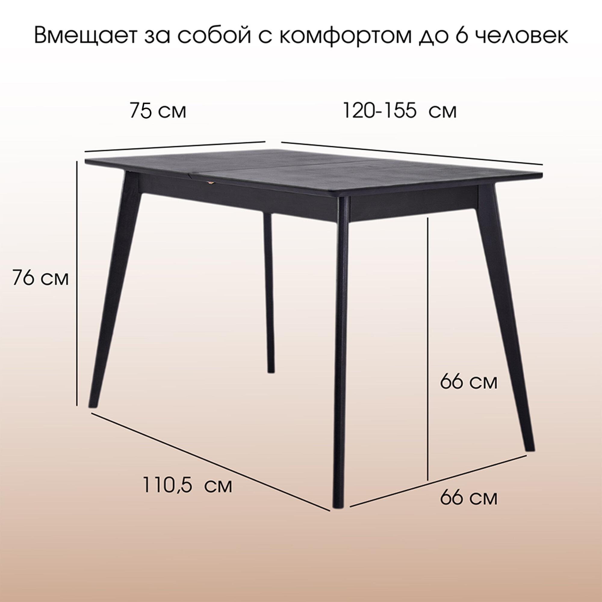 Купить Стол кухонный Пегас Classic+ (120-155) см прямоугольный, раздвижной, деревянный- Черная эмаль