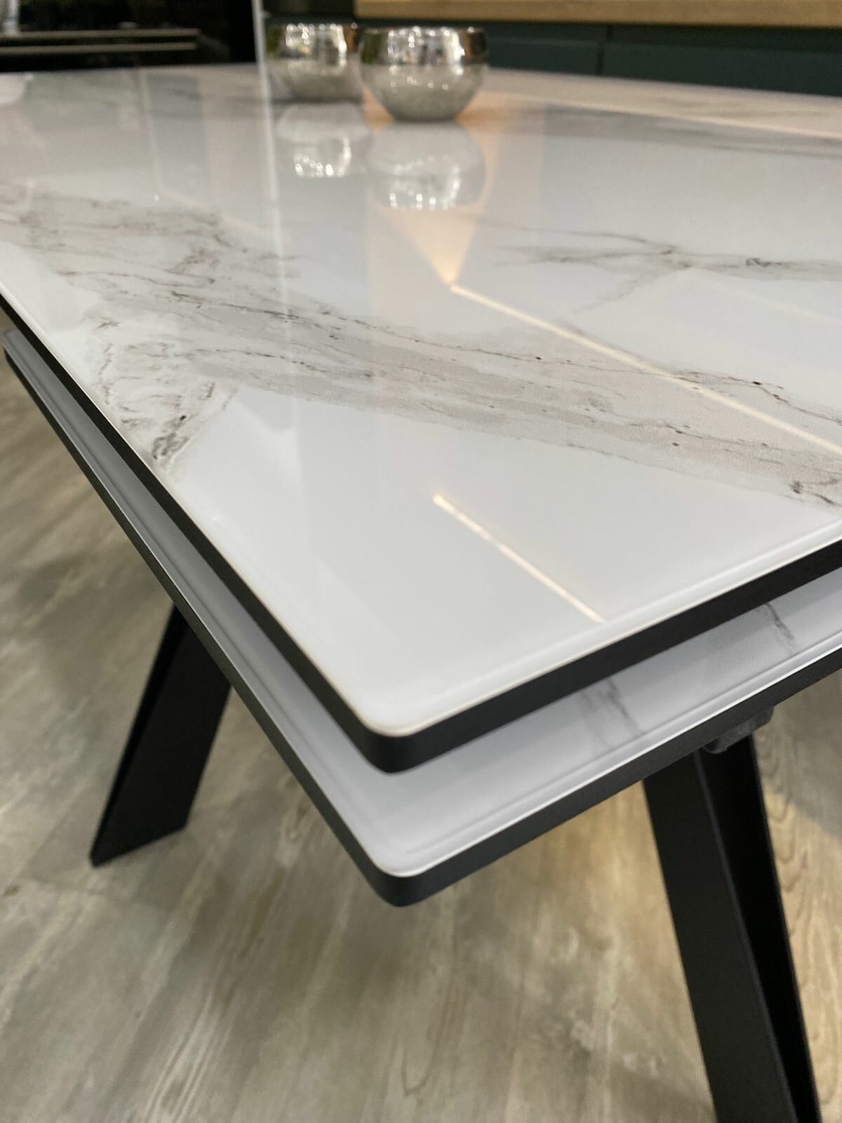 Стол обеденный раскладной для кухни и столовой НЕО, белый мрамор/черный, 140(200)х80 см интересное: