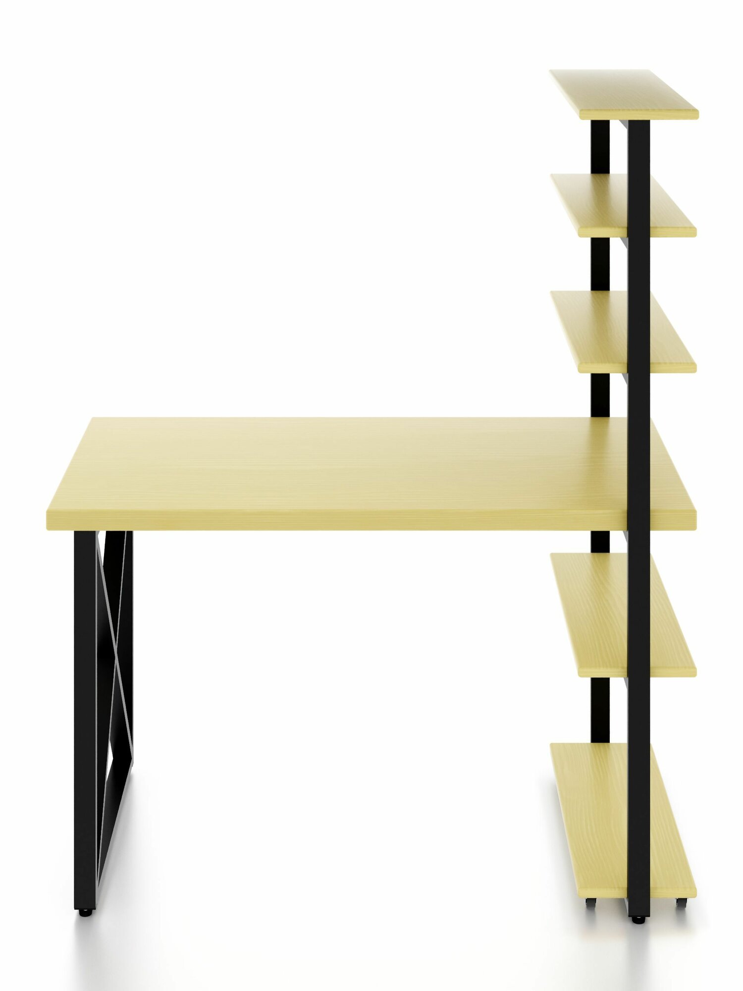 Стол компьютерный Loft с пятью полками, столешница цвета ольхи из массива сосны 40 мм и черные металлические крестообразные ножки, 100х80х148 см
