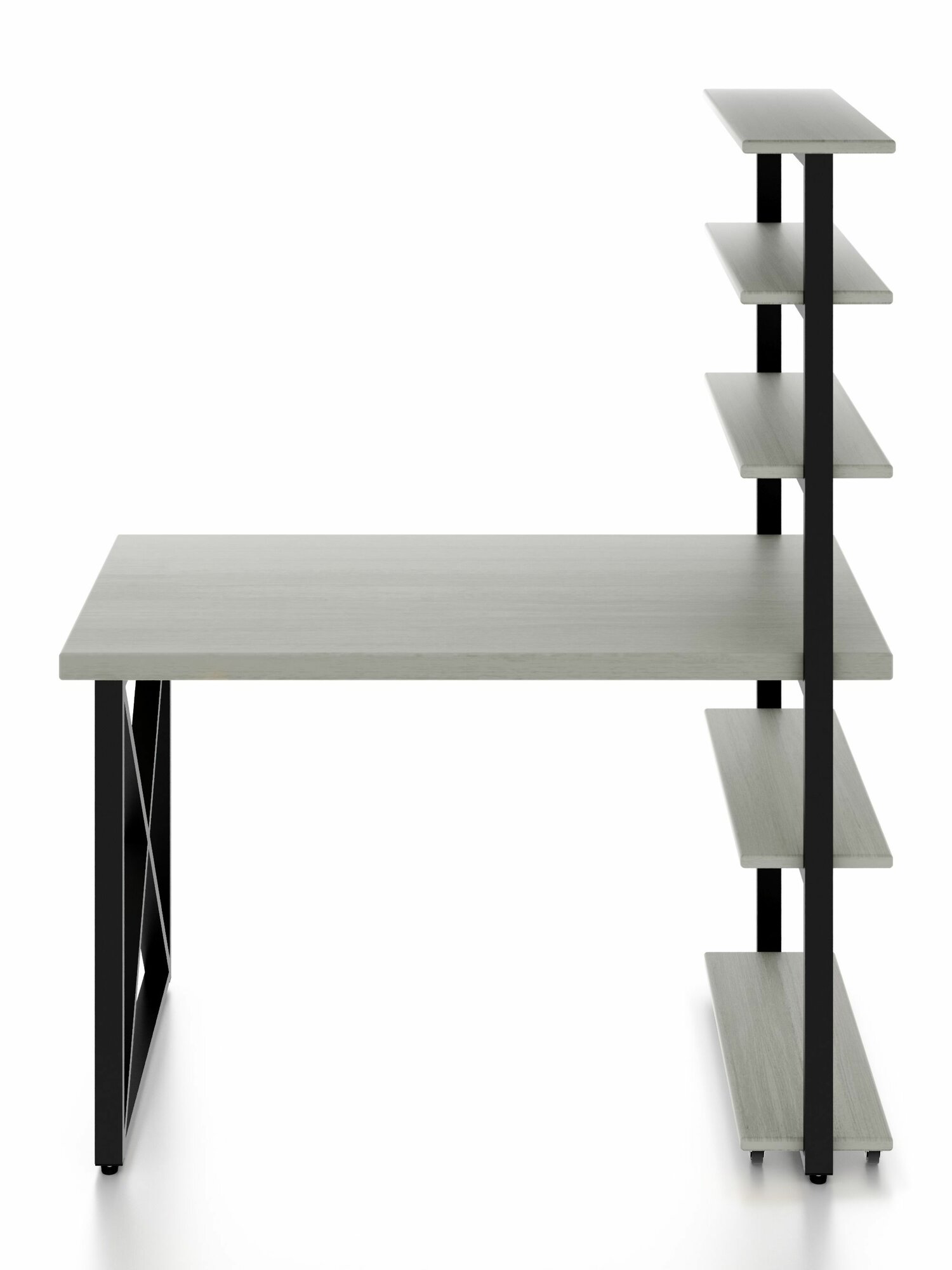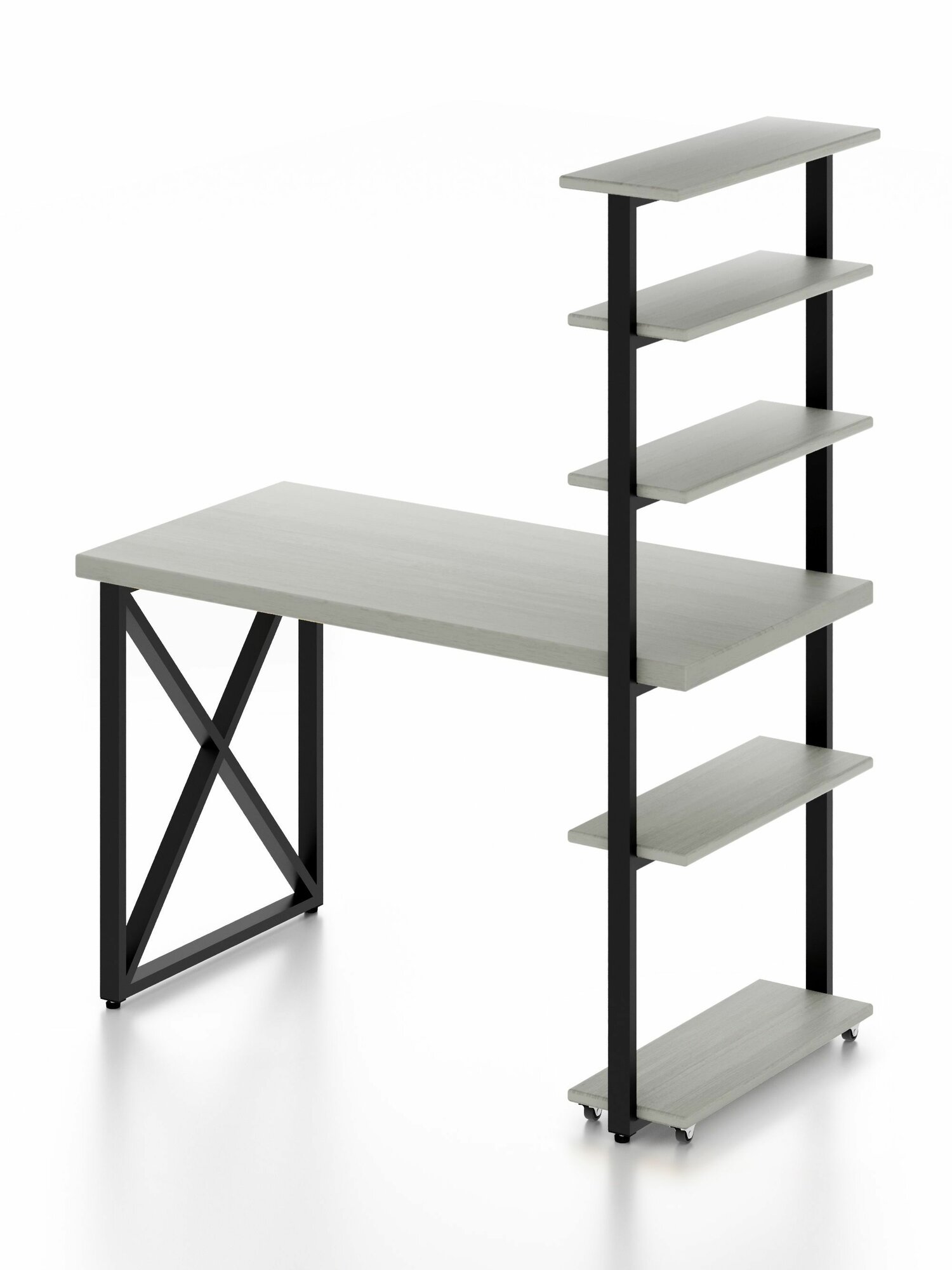Стол компьютерный Loft с пятью полками, столешница цвета платины из массива сосны 40 мм и черные металлические крестообразные ножки, 110х60х148 см