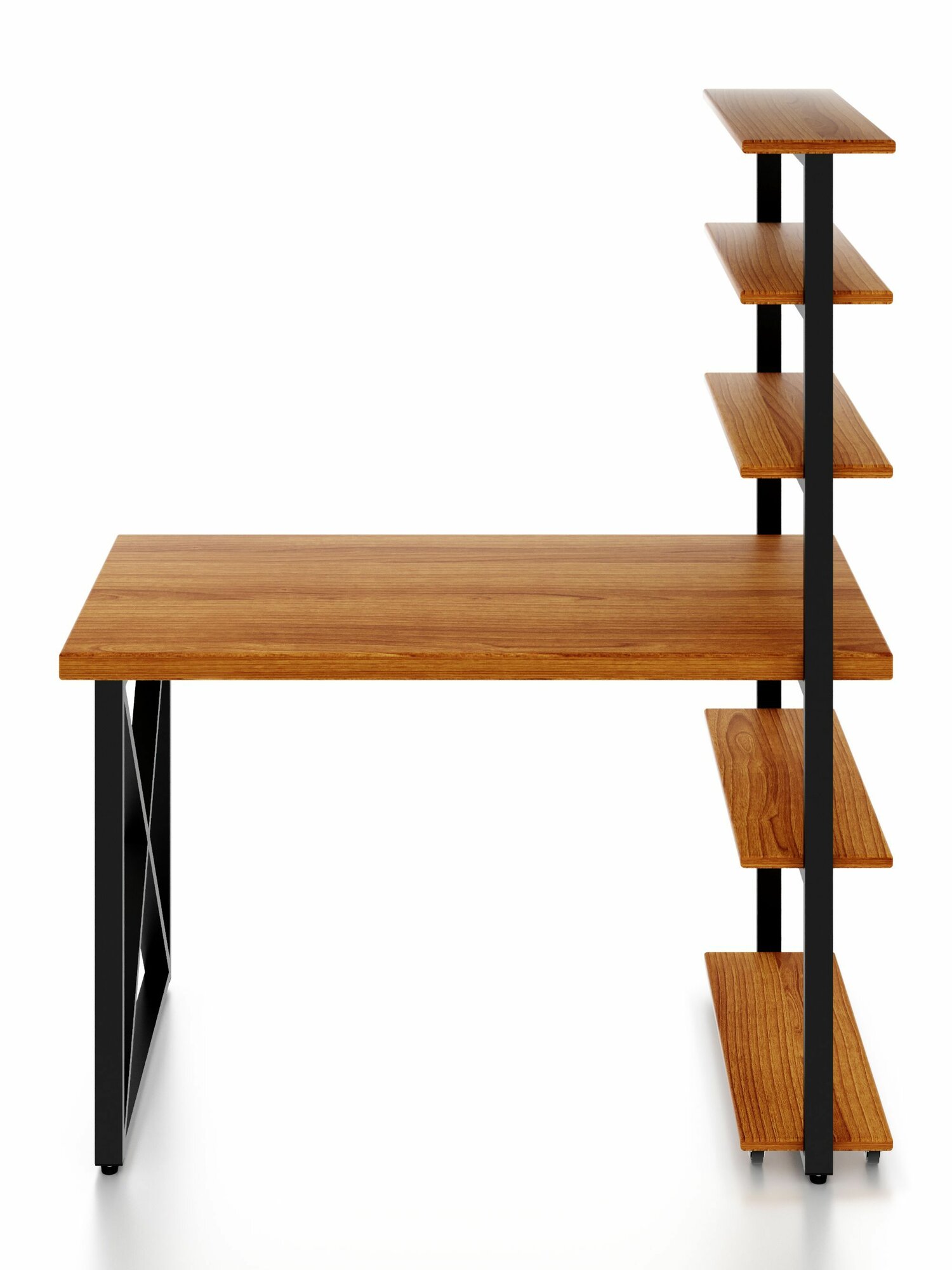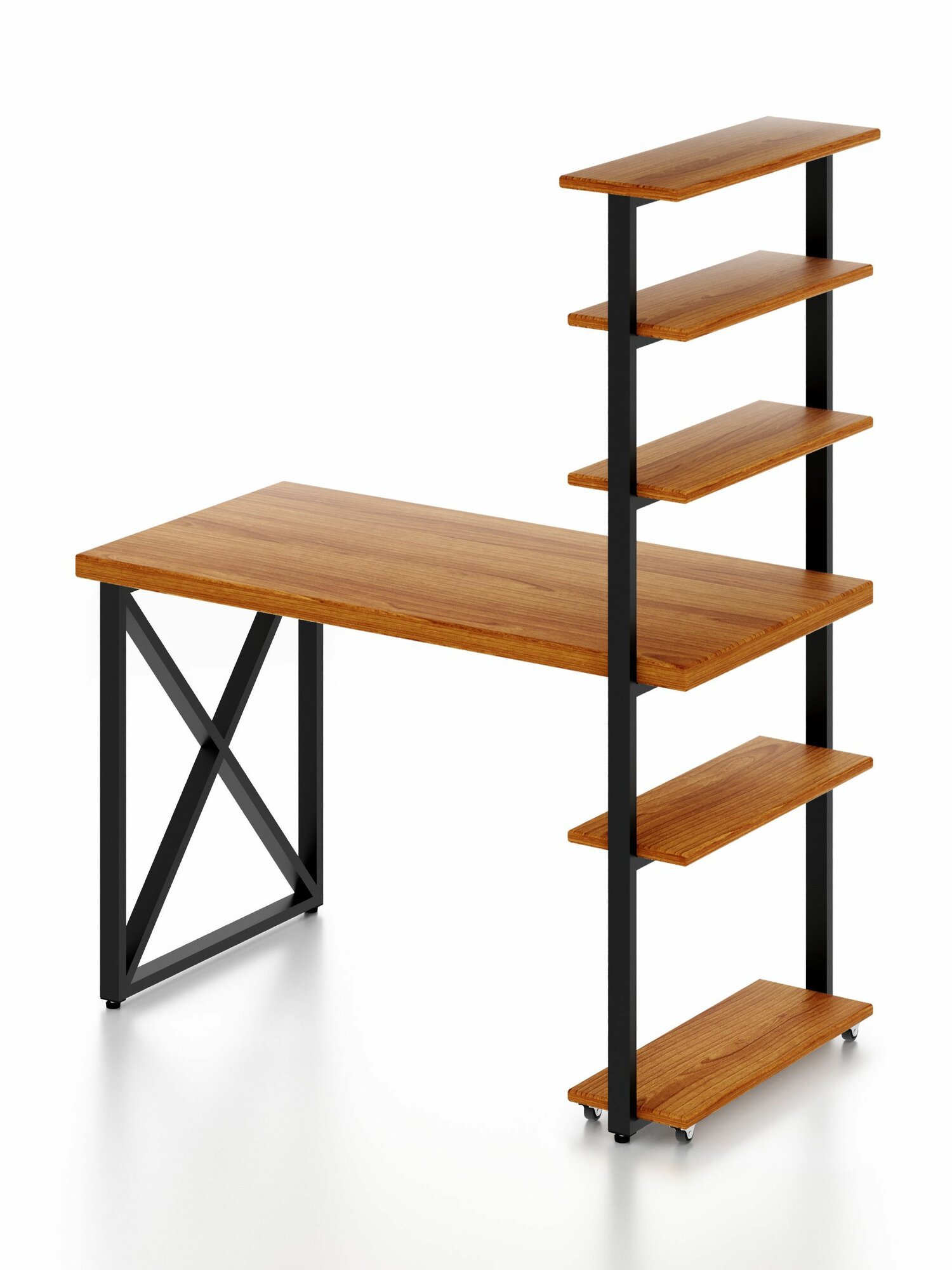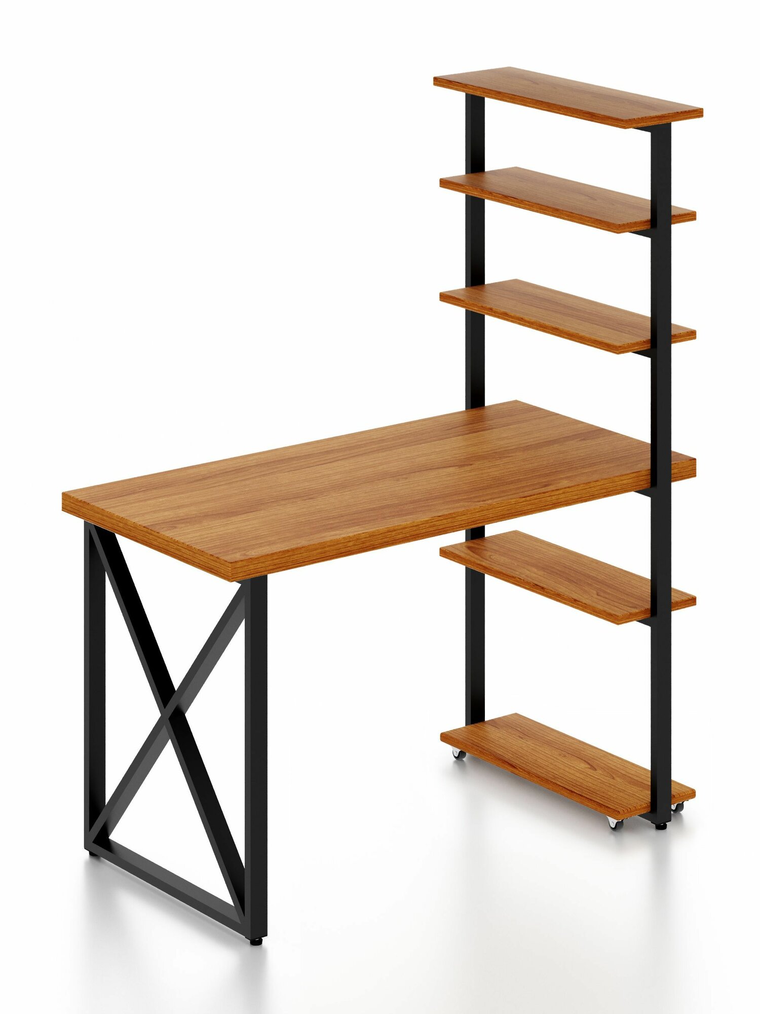 Стол компьютерный Loft с пятью полками, столешница цвета ольхи из массива сосны 40 мм и черные металлические крестообразные ножки, 110х80х148 см