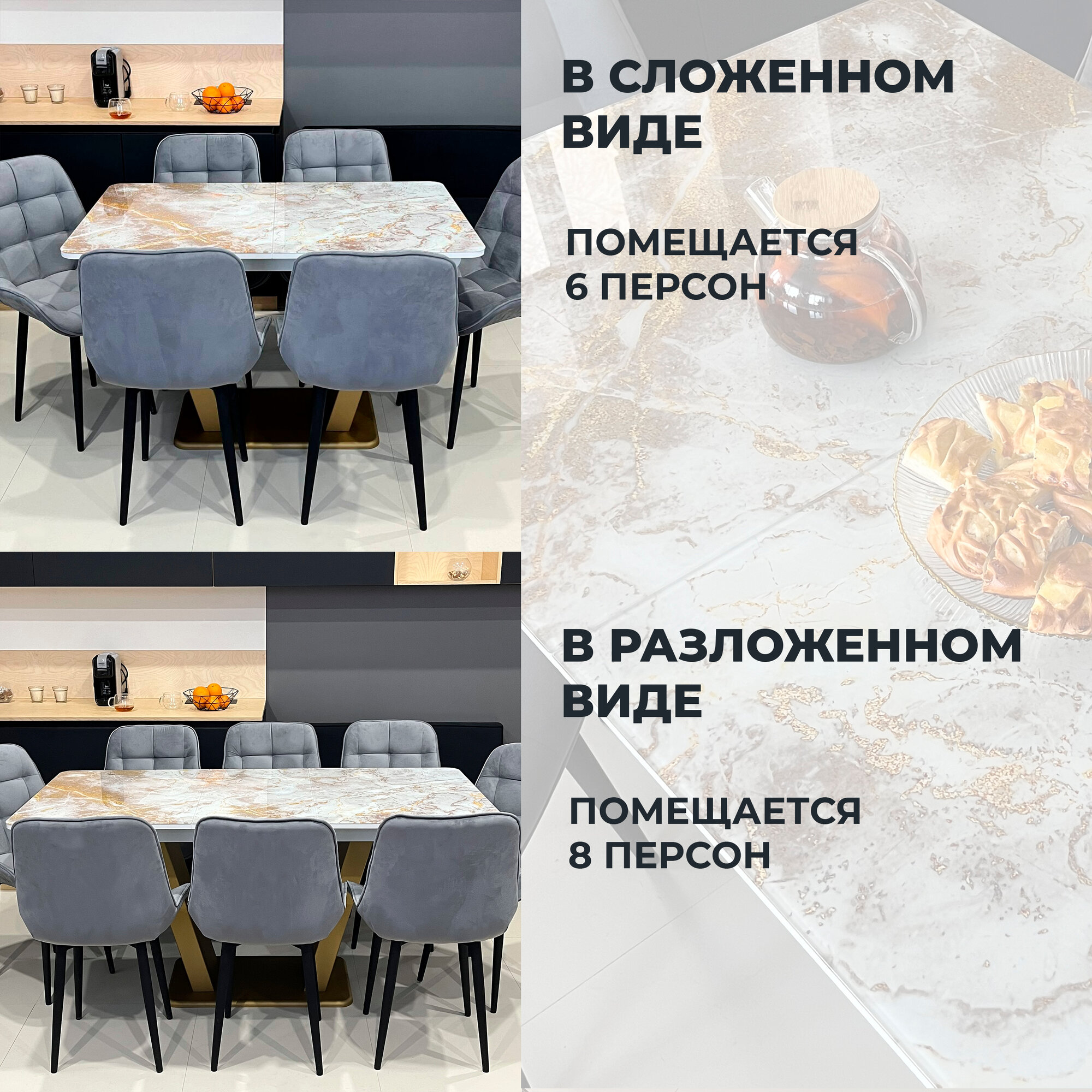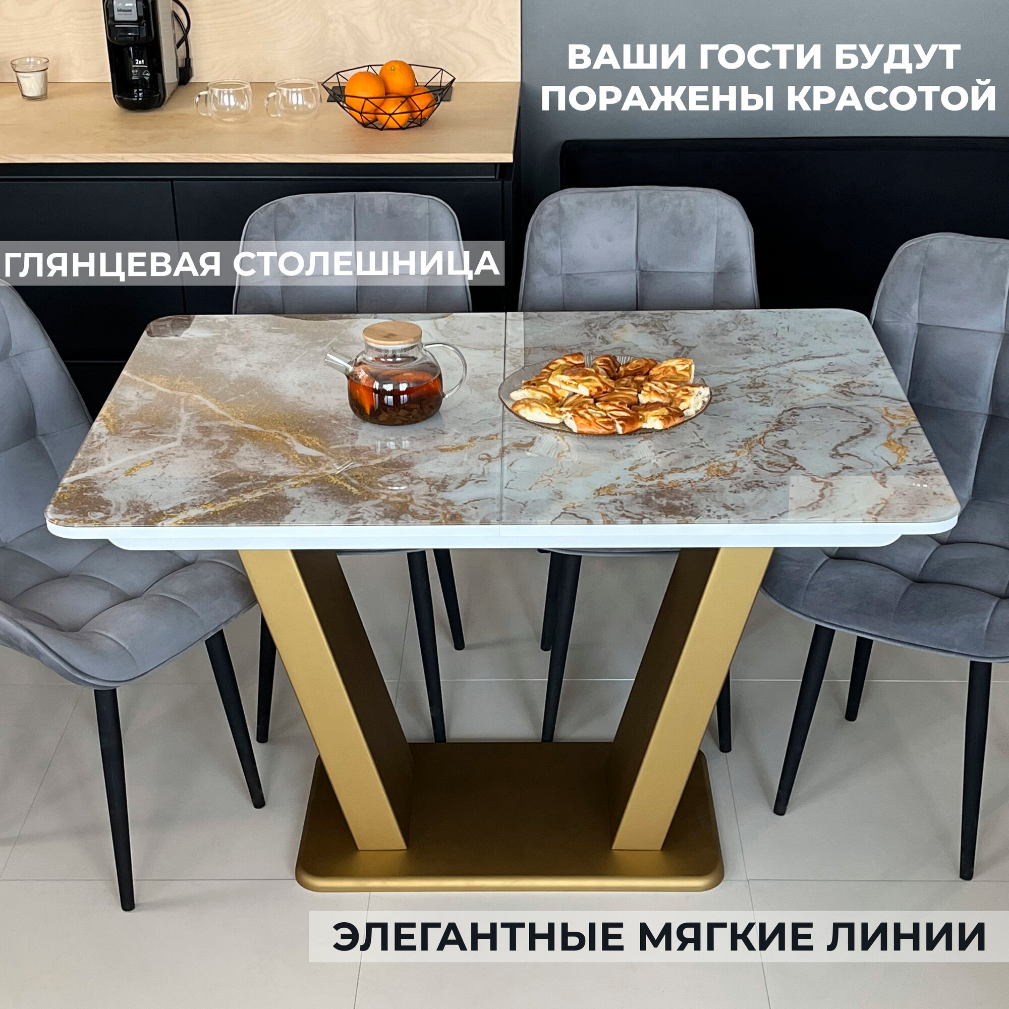 СохранитьСтол обеденный Денвер раздвижной, 120 х 80 х 75 Мрамор Золото с золотыми опорами интересное: