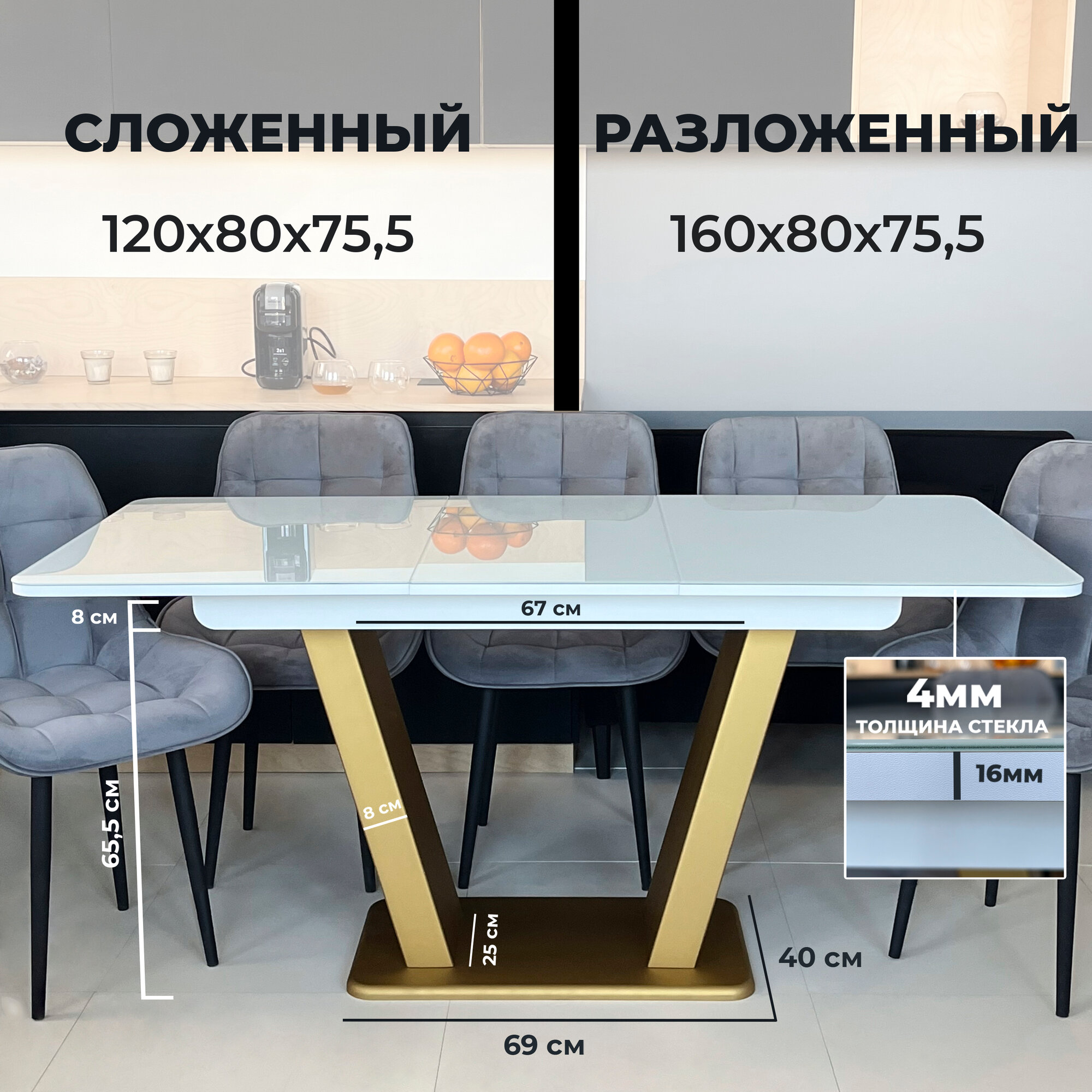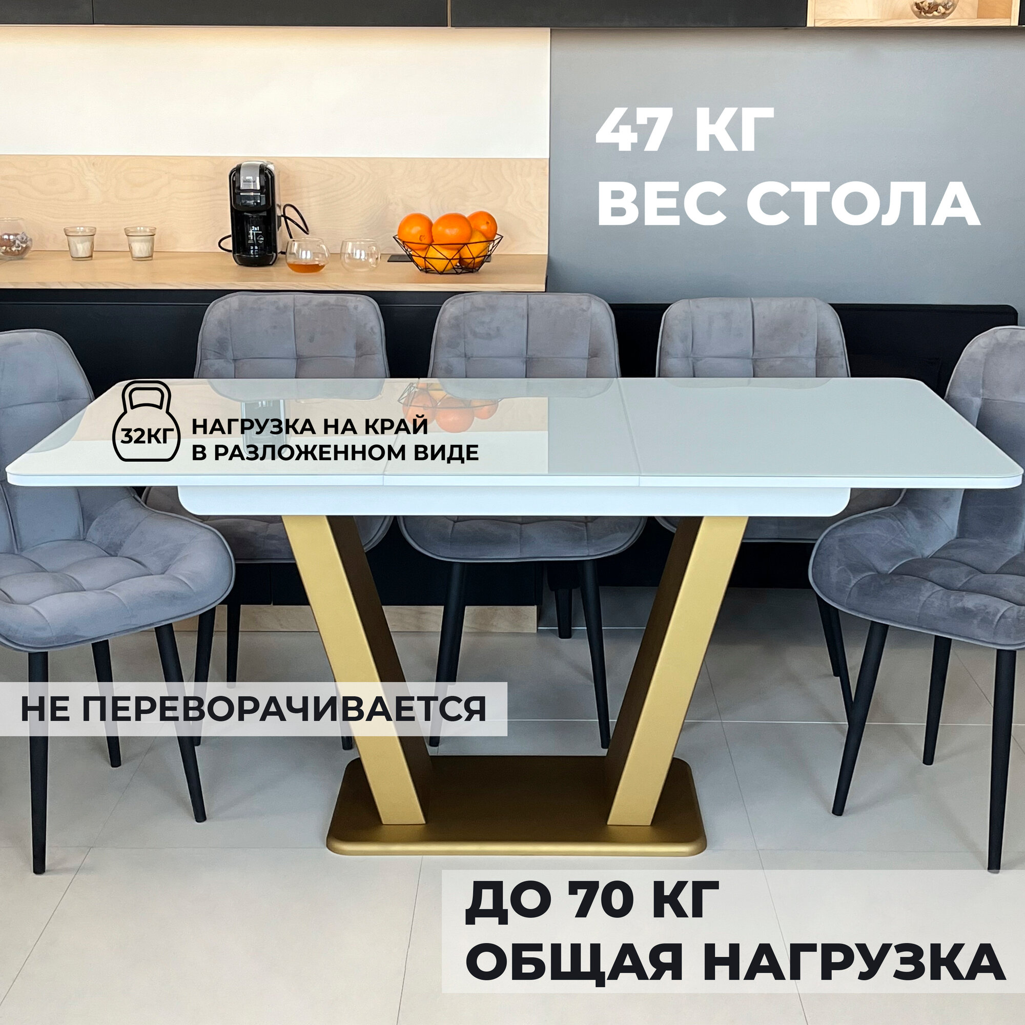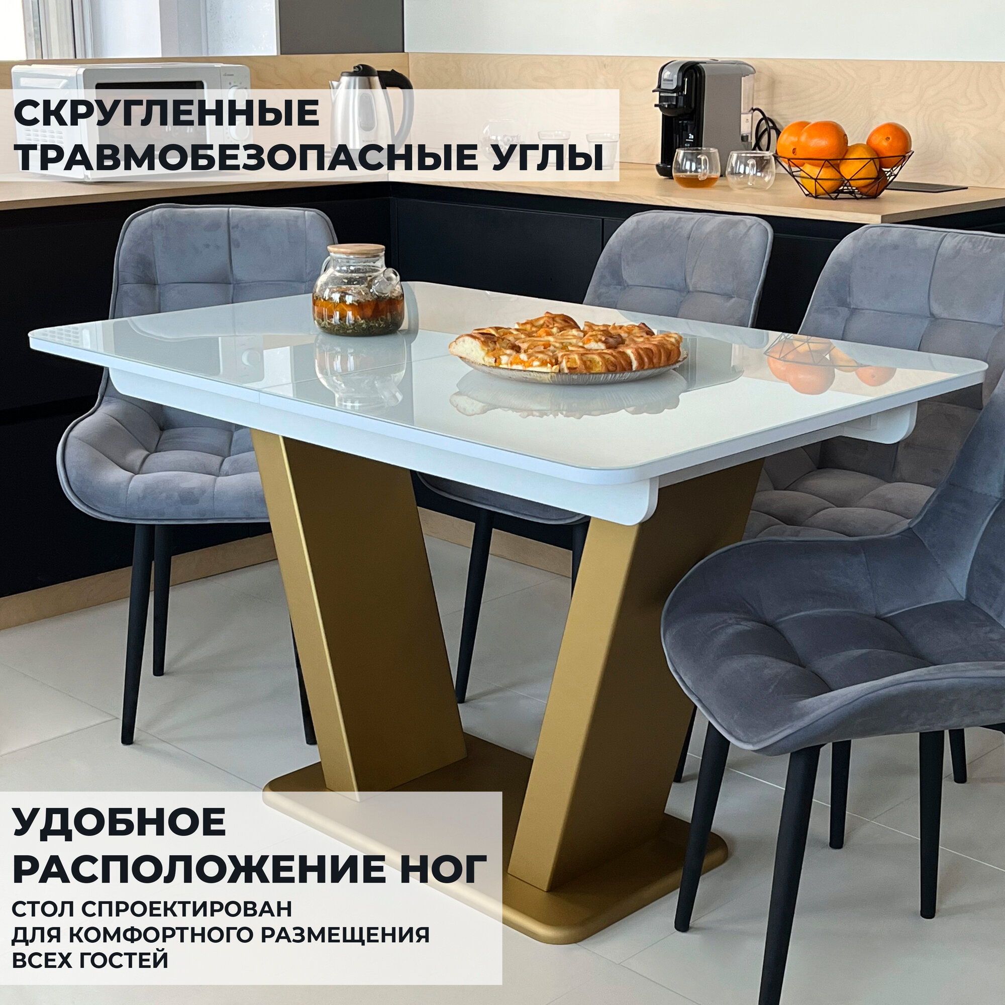 Купить Стол обеденный Денвер раздвижной, 120 х 80 х 75 Белый с золотыми опорами
