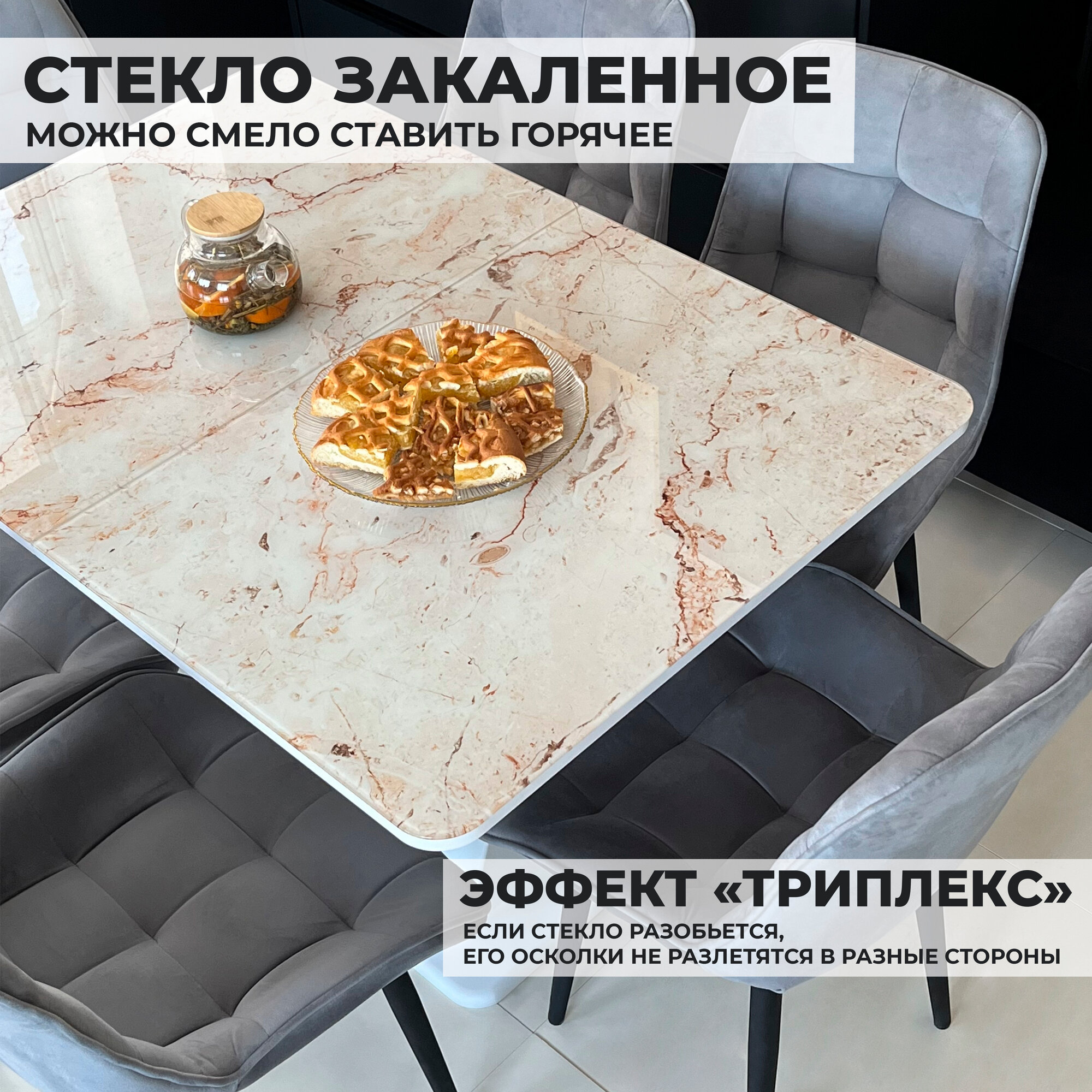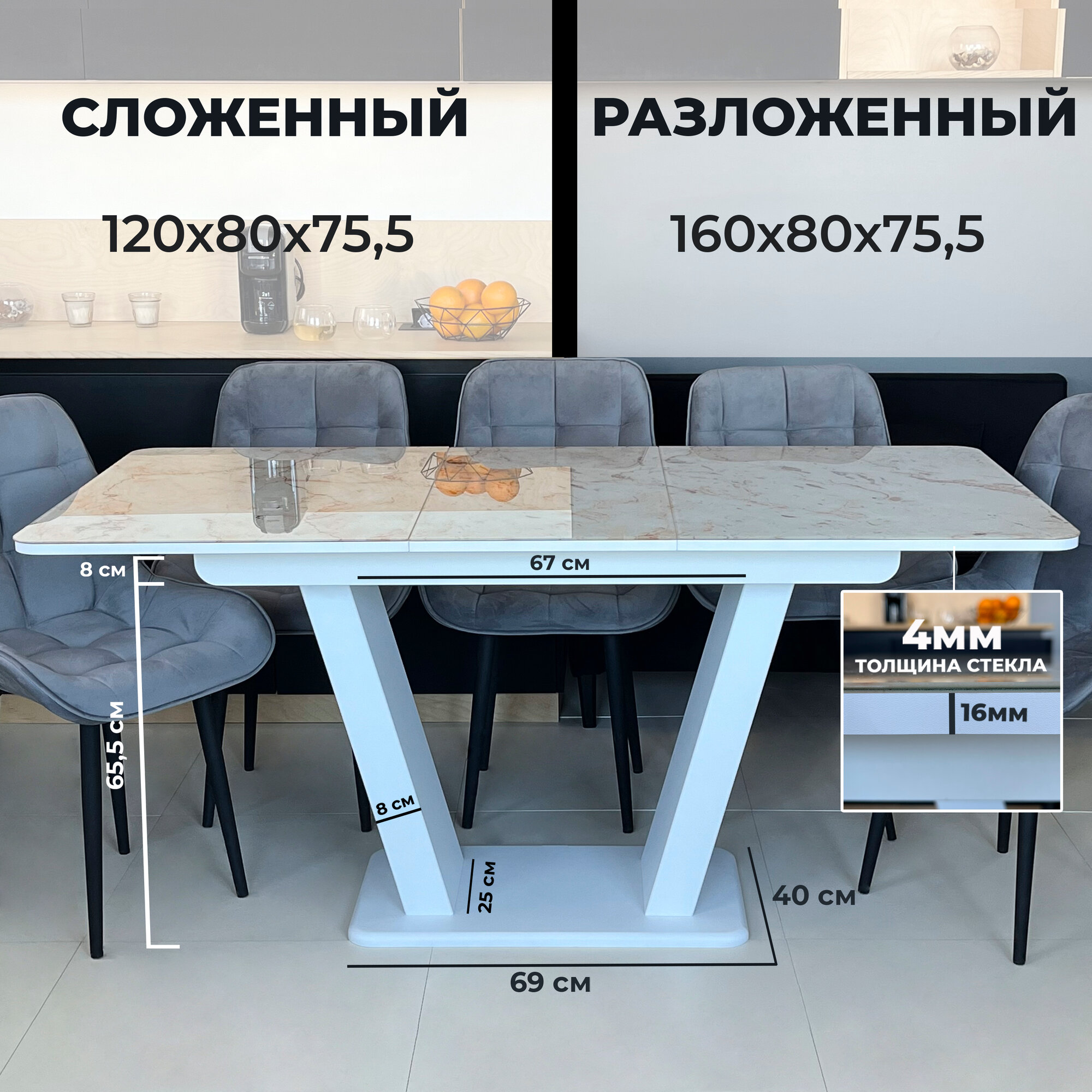 Стол обеденный Денвер раздвижной, 120 х 80 х 75 Мрамор Бежевый с белыми опорами