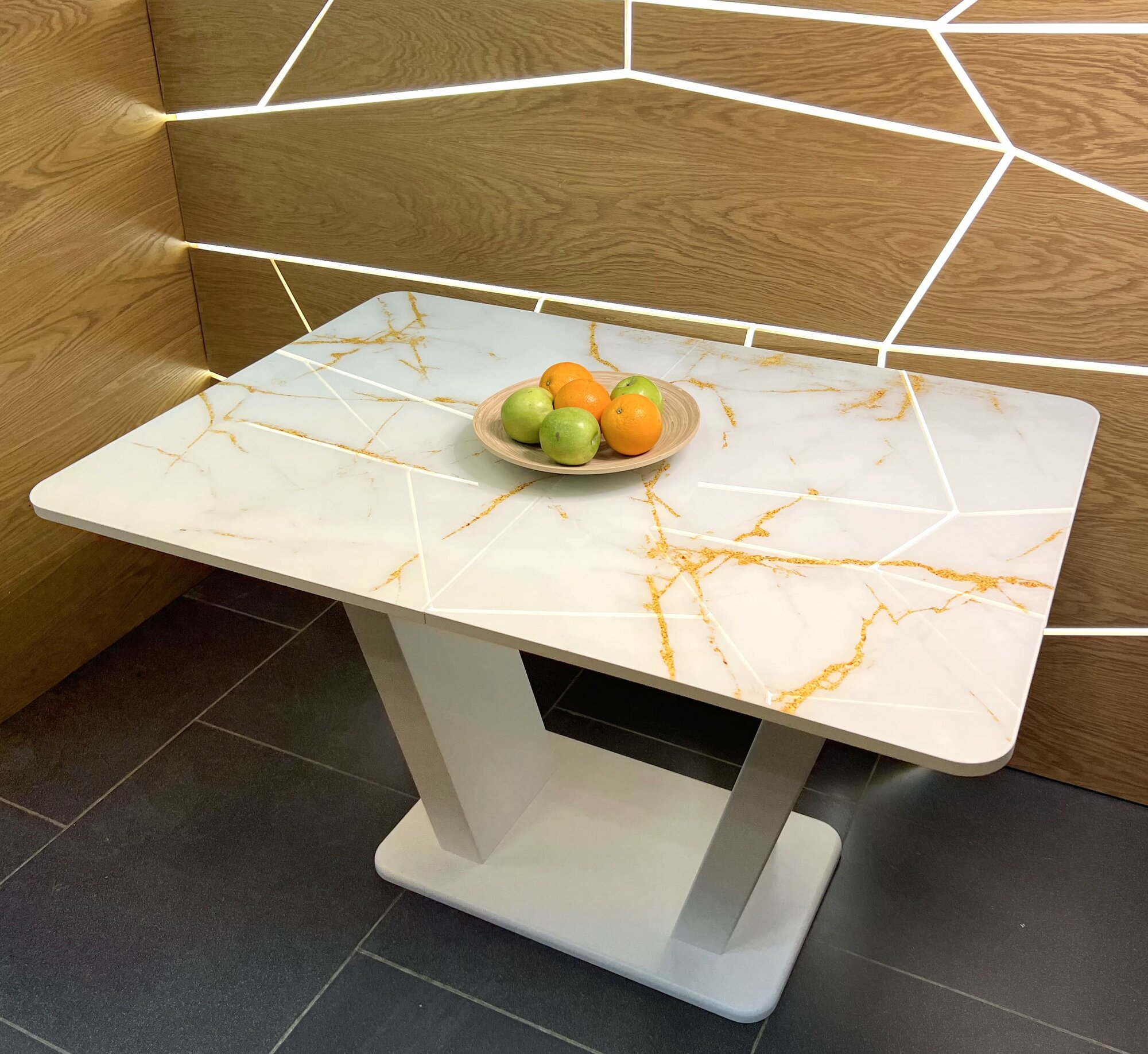 Стол обеденный Денвер раздвижной, 120 х 80 х 75 Мрамор Золотой с белыми опорами