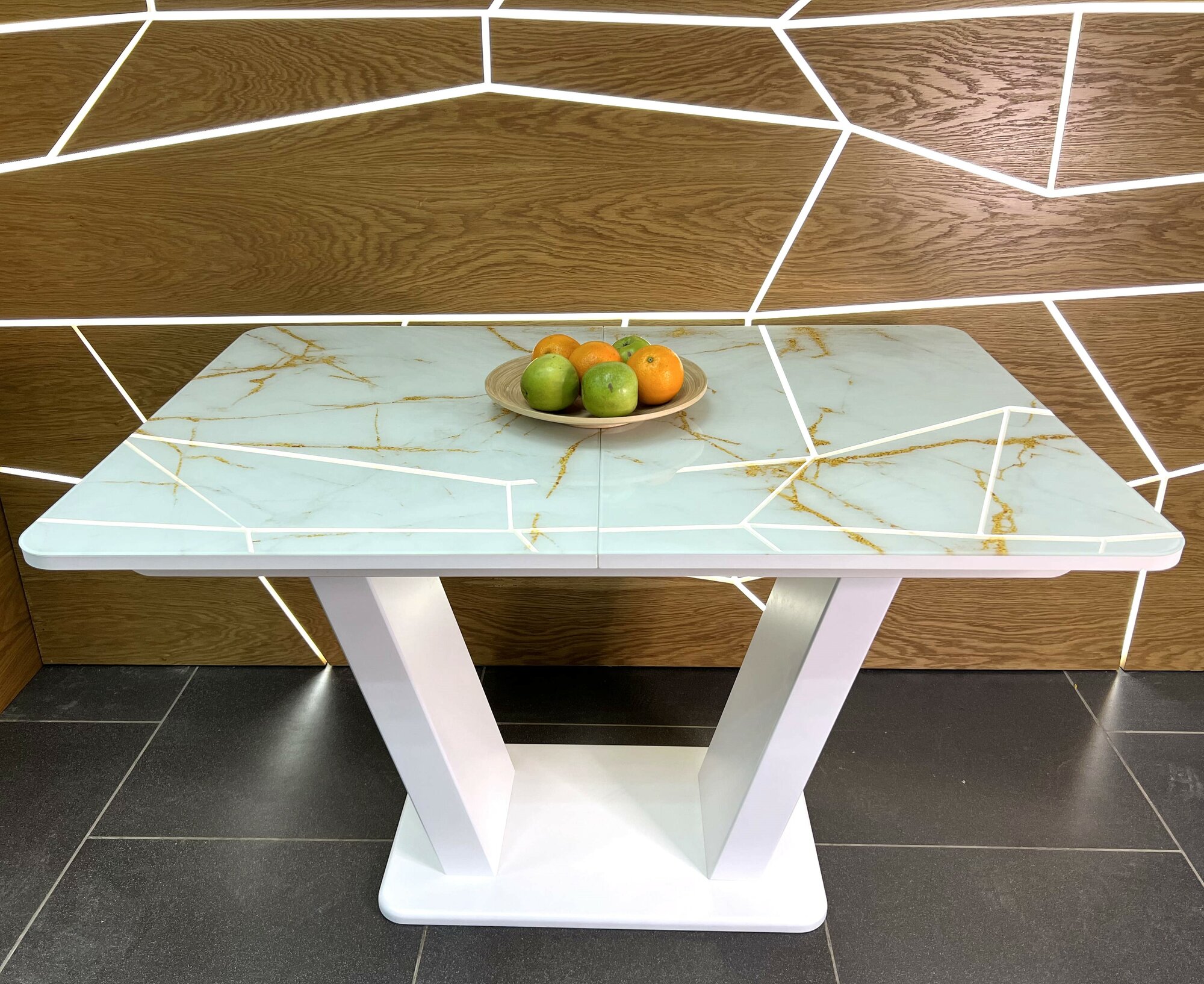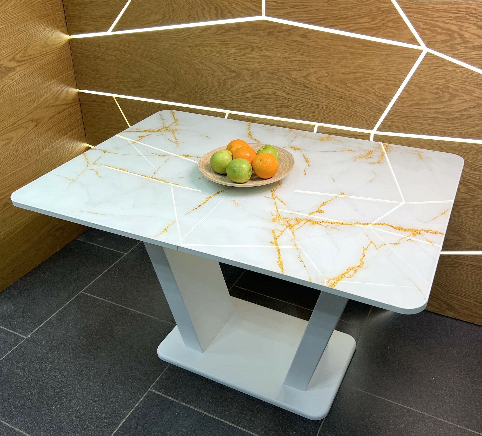 Стол обеденный Денвер раздвижной, 120 х 80 х 75 Мрамор Каррера с белыми опорами