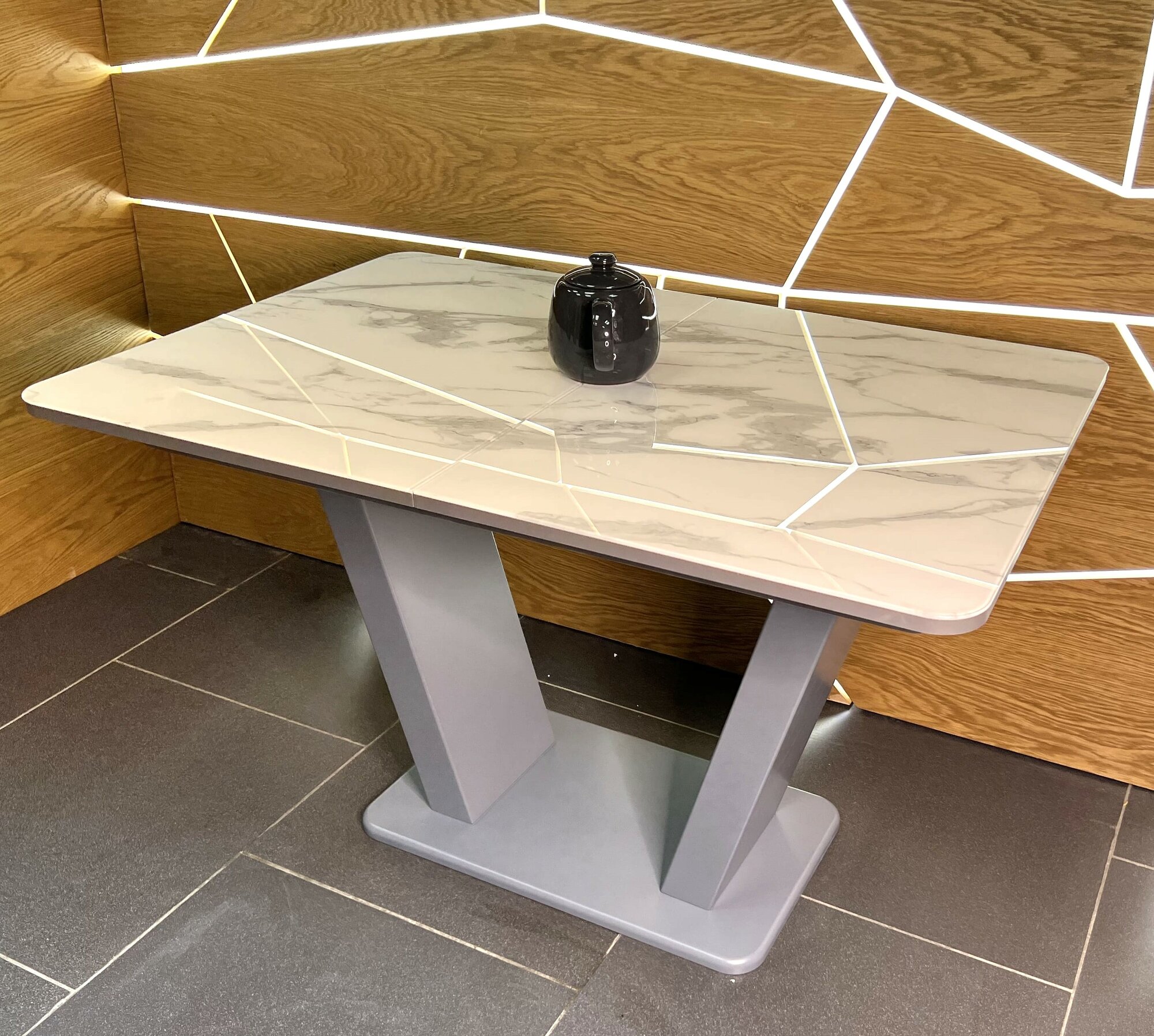 Стол обеденный Денвер раздвижной, 120 х 80 х 75 Мрамор Серый матовый с белыми опорами