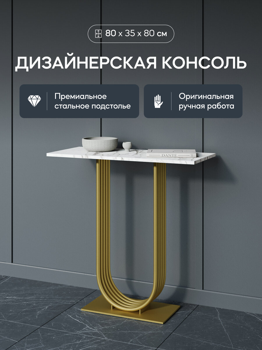 GEN GROUP Столик консольный ARFEO 80х35 см, белый мрамор с белым подстольем