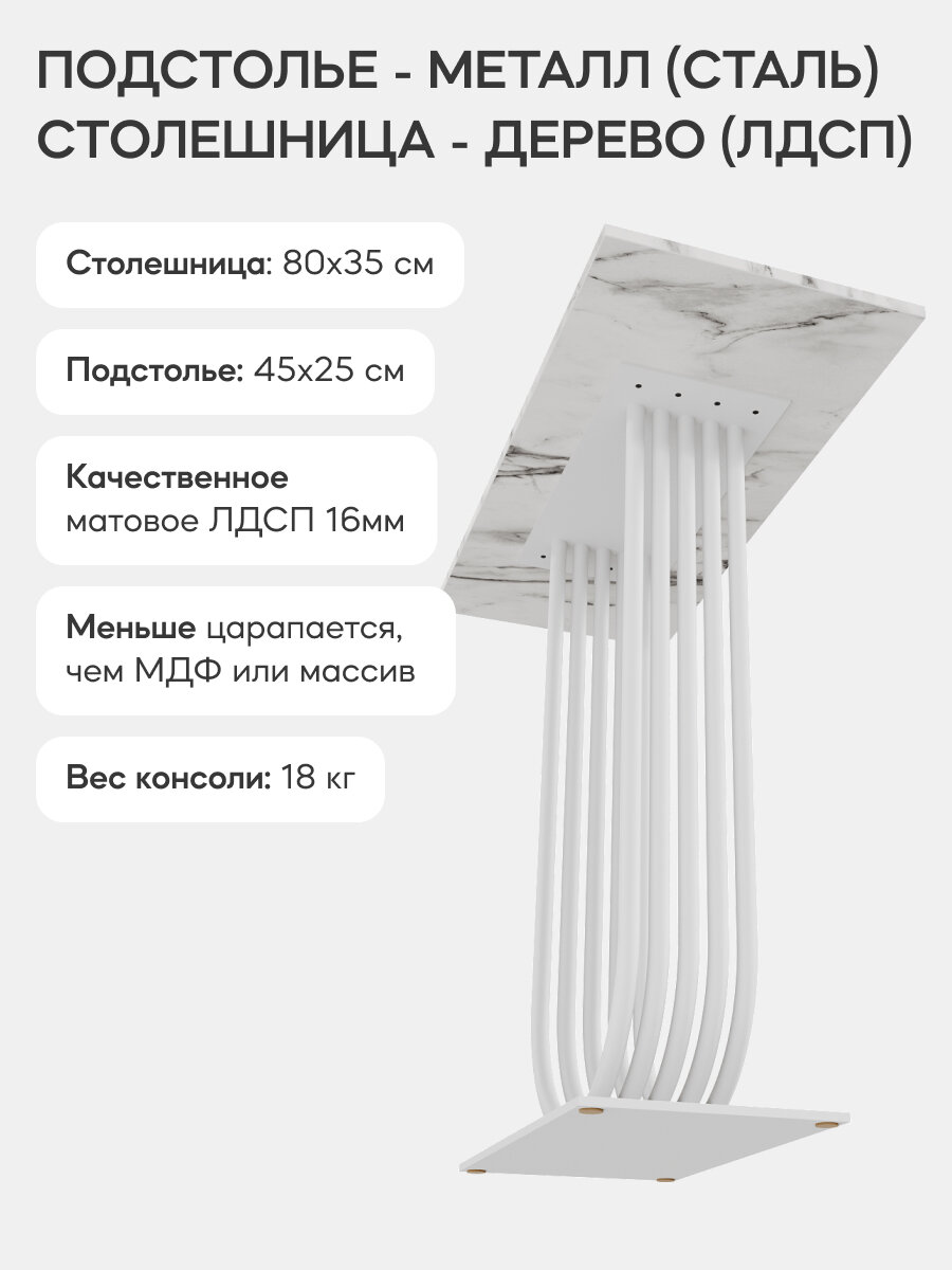 Купить GEN GROUP Столик консольный ARFEO 80х35 см, белый мрамор с белым подстольем