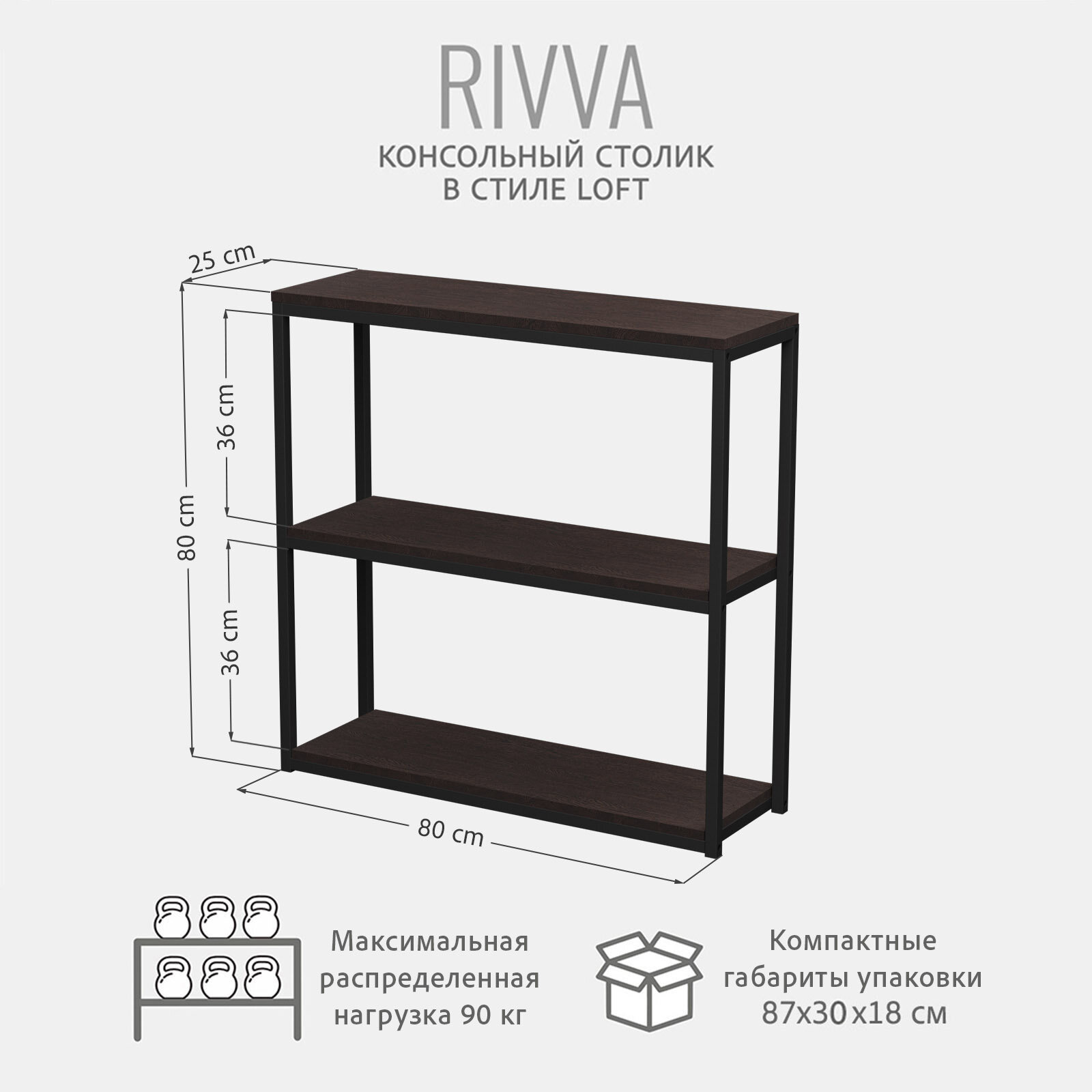 Купить Консольный столик RIVVA loft, темно-коричневый, журнальный столик, приставной, тумба под телевизор, лофт, 80x80x25 см, гростат