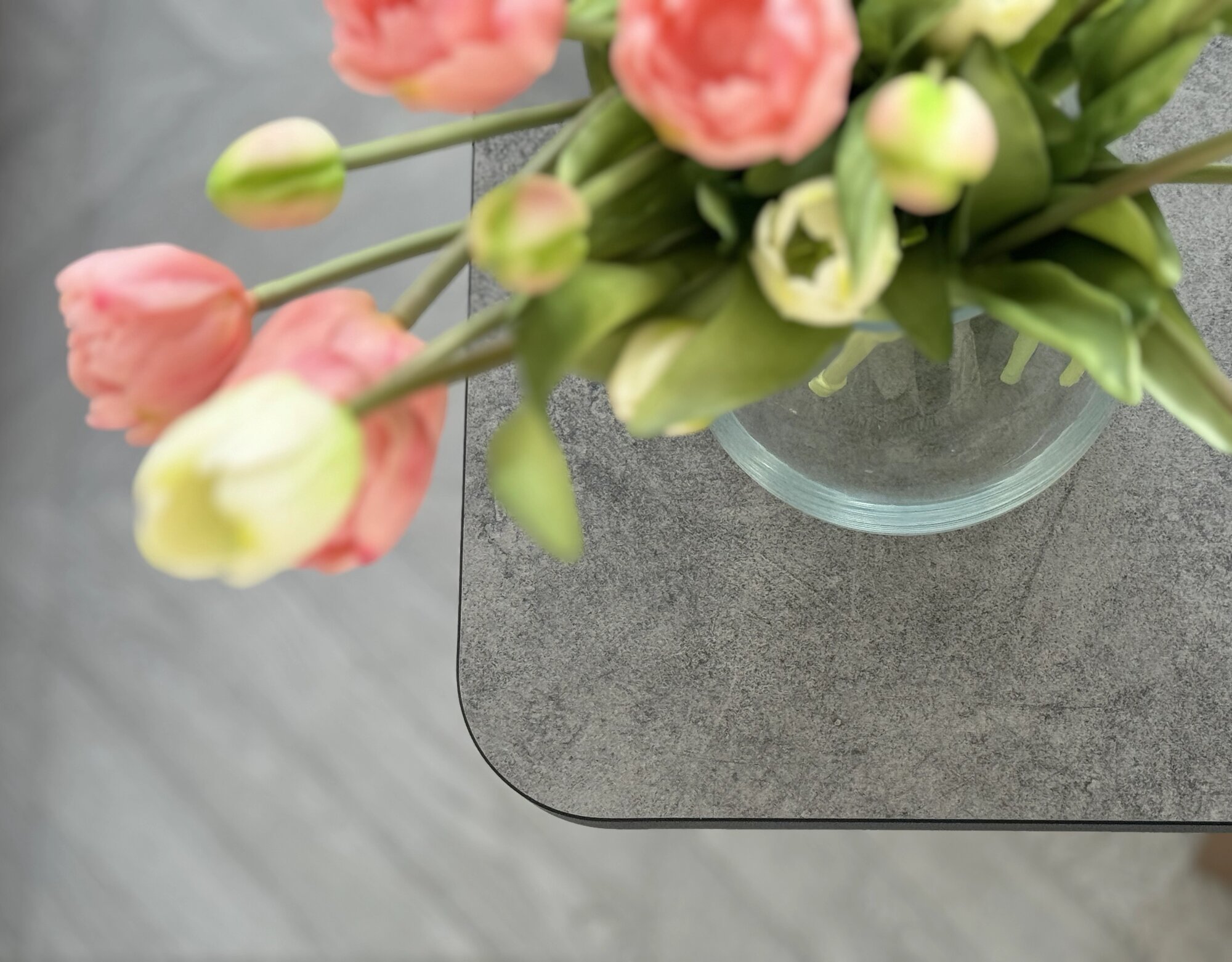 Стол Crystal (Кристалл) Серый бетон на черном 75х110 (140) см обеденный раздвижной