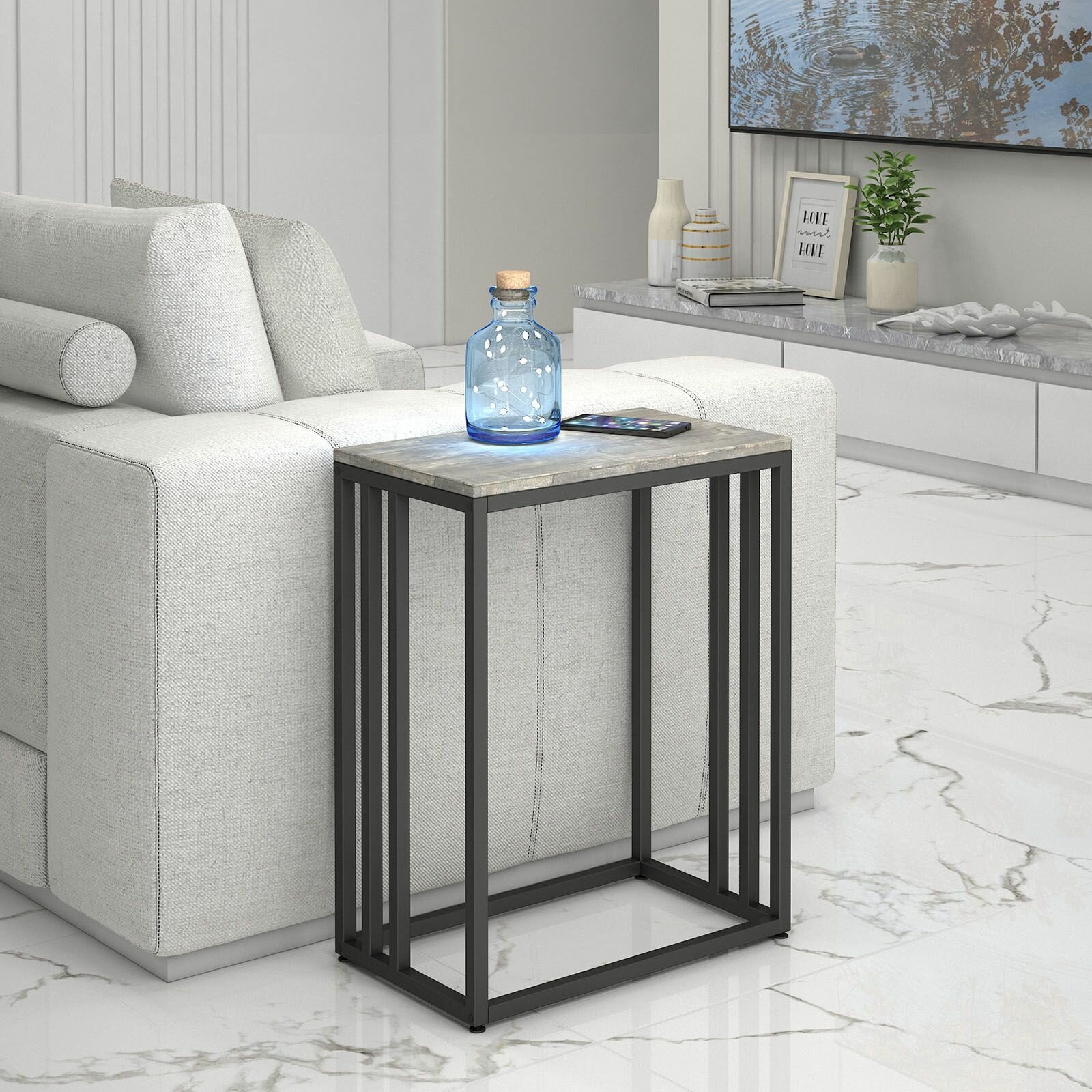 Журнальный столик GREN loft, светло-серый, консольный приставной металлический столик в стиле лофт, 50х30х64 см, гростат