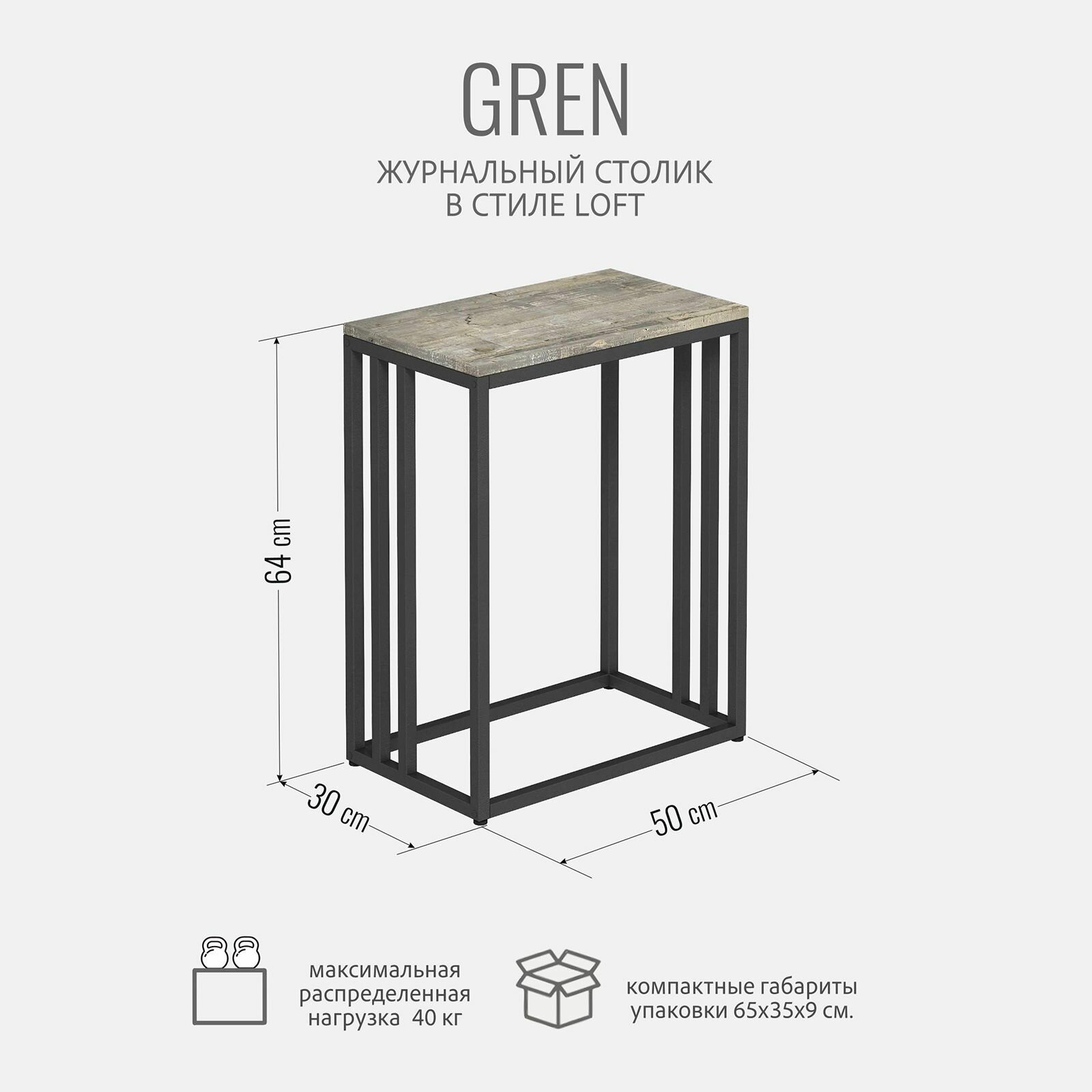 СохранитьЖурнальный столик GREN loft, серый, консольный приставной металлический столик в стиле лофт, 50х30х64 см, гростат интересное: