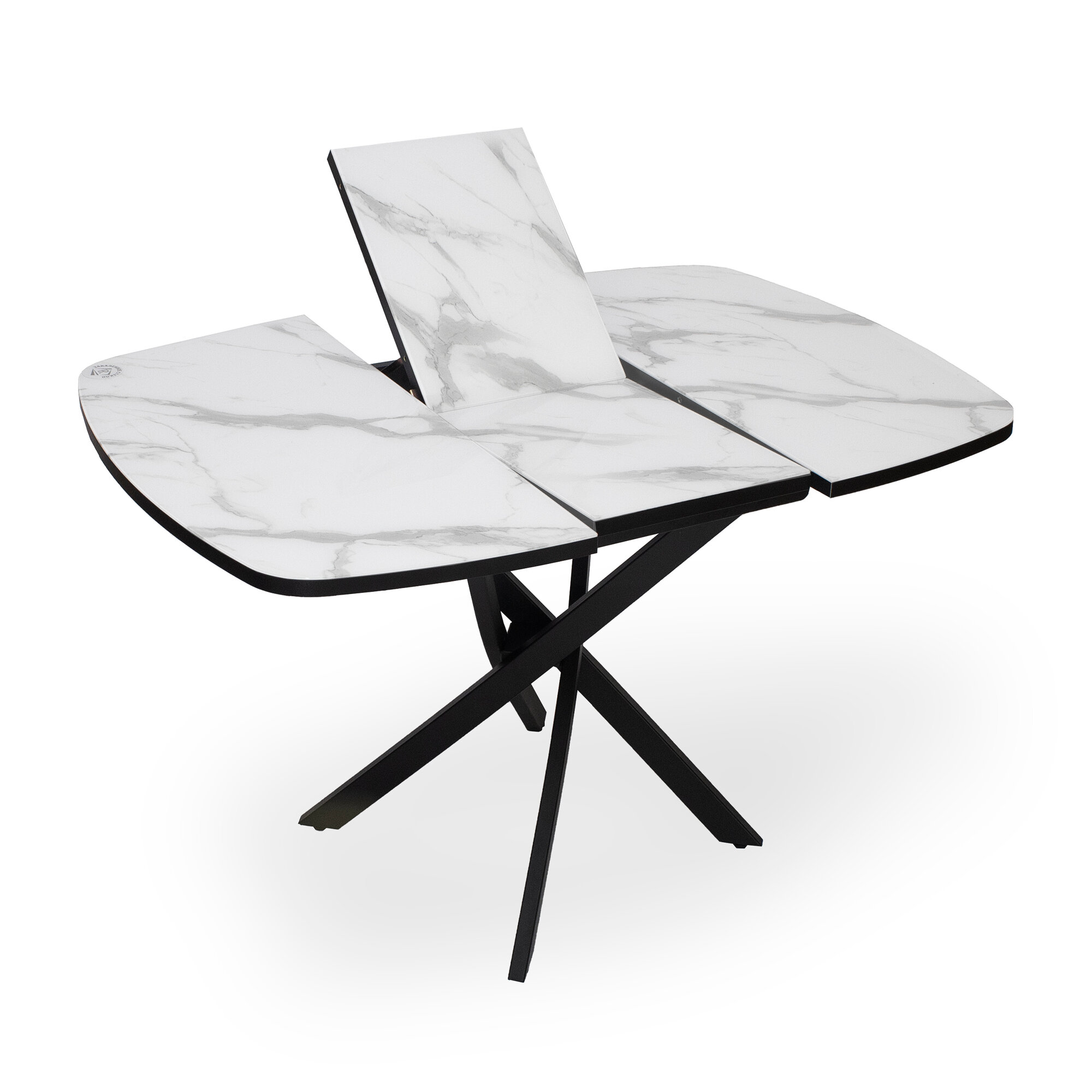 Купить Стол раздвижной со стеклом ГРАЦИЯ-2 89/120х89см, М-формы, стекло мрамор белый, подстолье черное, RI-COM