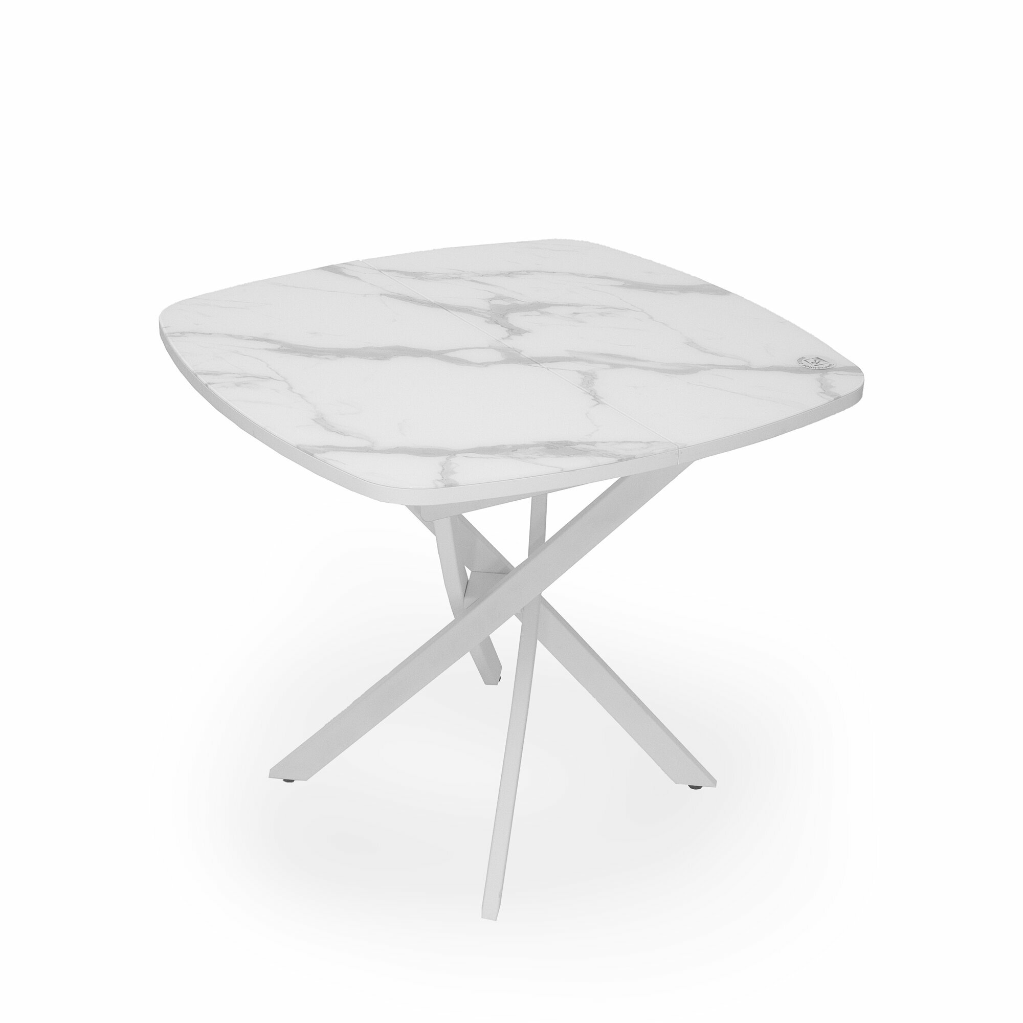 Купить Стол раздвижной со стеклом ГРАЦИЯ-2 89/120х89см, М-формы, стекло мрамор белый, подстолье белое, RI-COM