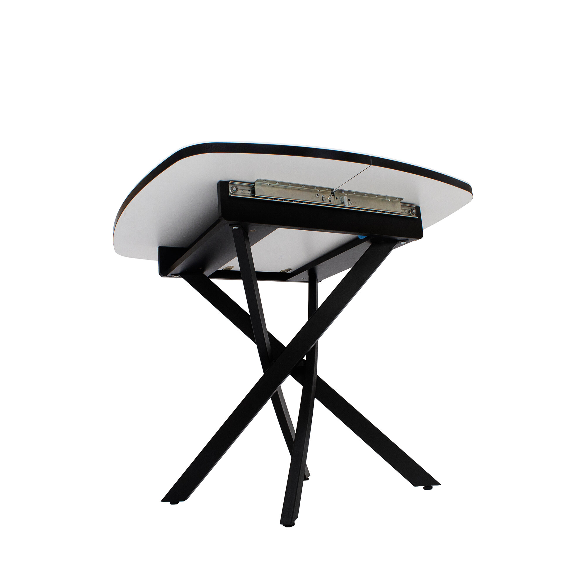 Купить Стол раздвижной со стеклом ГРАЦИЯ-2 89/120х89см, М-формы, стекло белое, подстолье черное, RI-COM
