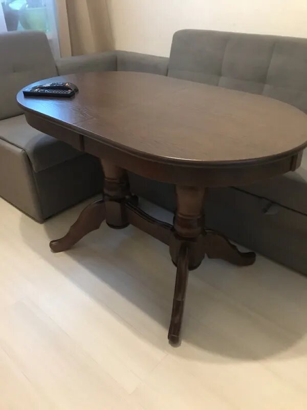 Стол ПРЕЗЕНТ 1600*900/500 темный орех . столешница мдф+ ножки массив березы . раздижном виде 2100*900. форма овальная