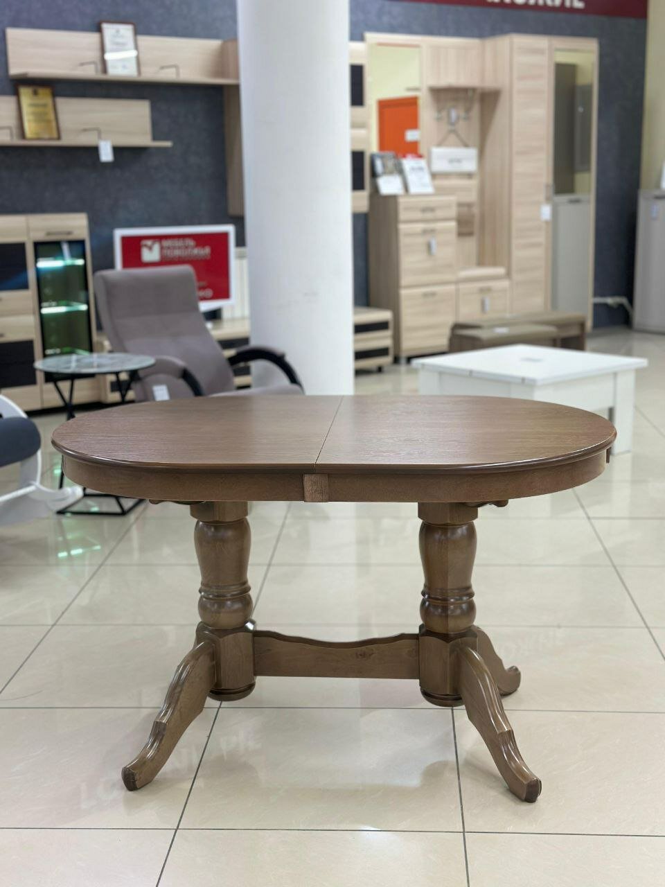 Стол ПРЕЗЕНТ 1300*800/400 темный орех . столешница мдф+ ножки массив березы . раздижном виде 1700*800. форма овальная