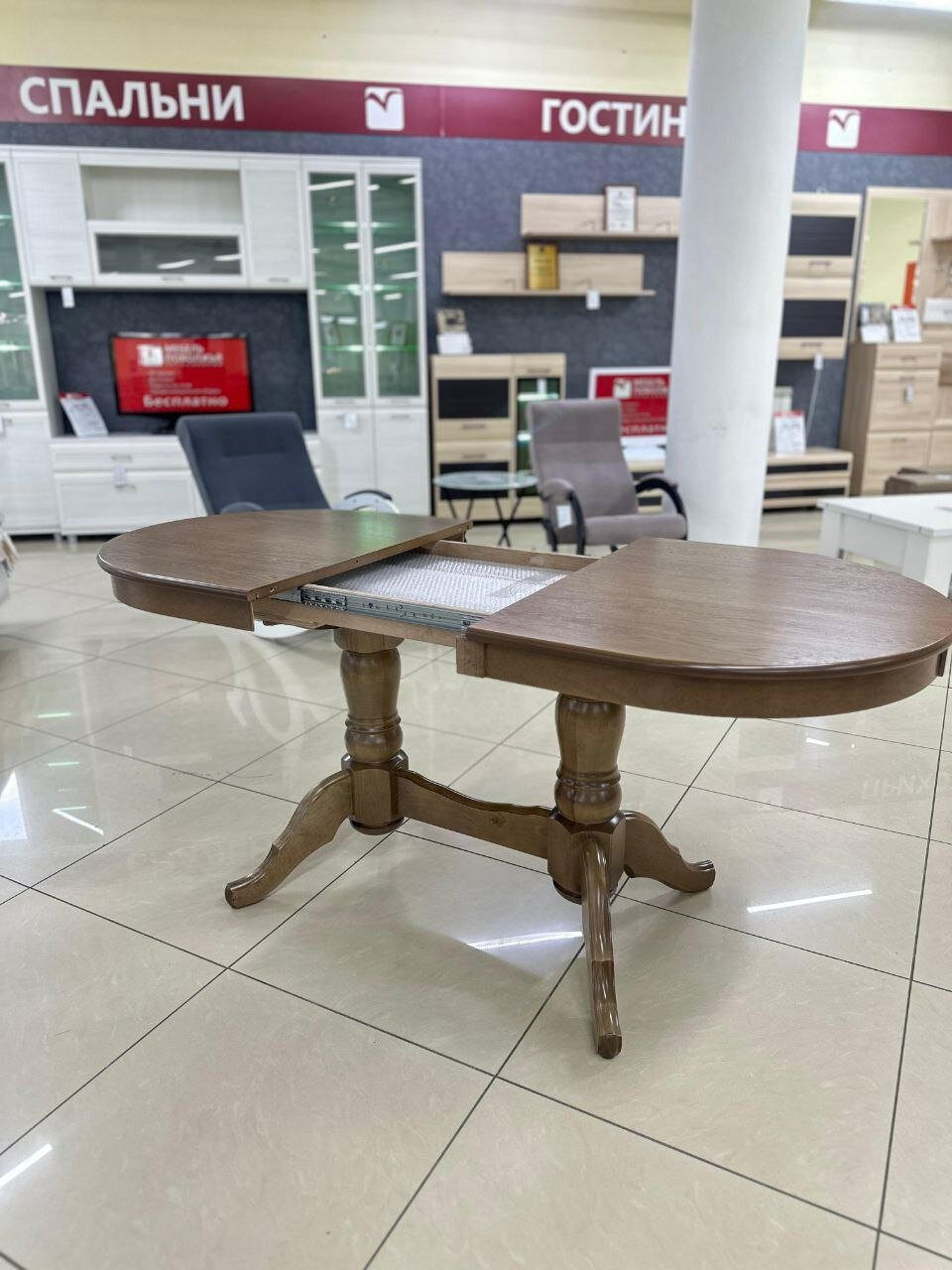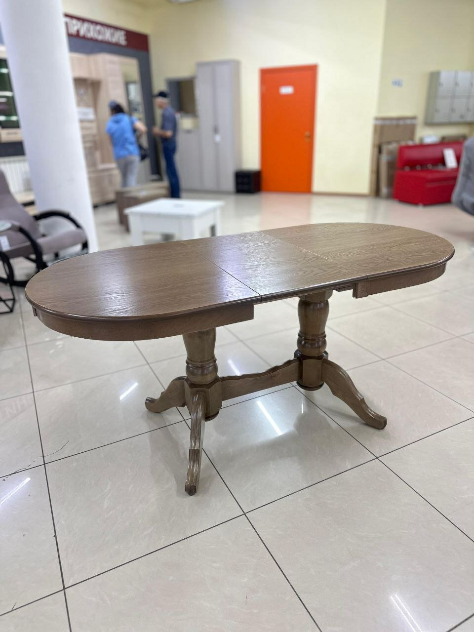 Купить Стол ПРЕЗЕНТ 1600*900/500 темный орех . столешница мдф+ ножки массив березы . раздижном виде 2100*900. форма овальная
