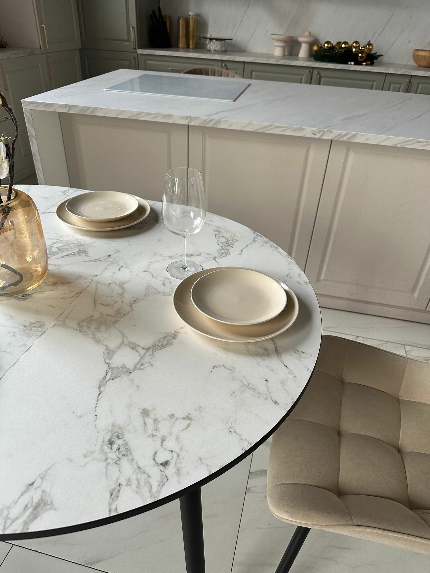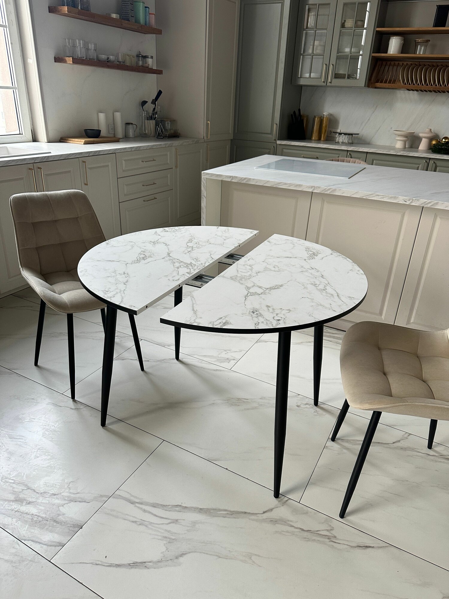Стол обеденный круглый раздвижной белый мрамор 90см кухонный интересное:
