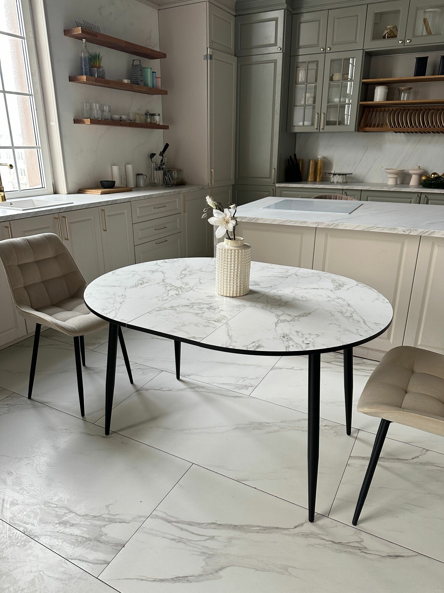 Ниже Вы можете прочитать отзывы на Стол обеденный круглый раздвижной белый мрамор 90см кухонный, ознакомится с подробными характеристиками, посмотреть интересные обзоры и фотографии на Стол обеденный круглый раздвижной белый мрамор 90см кухонный.