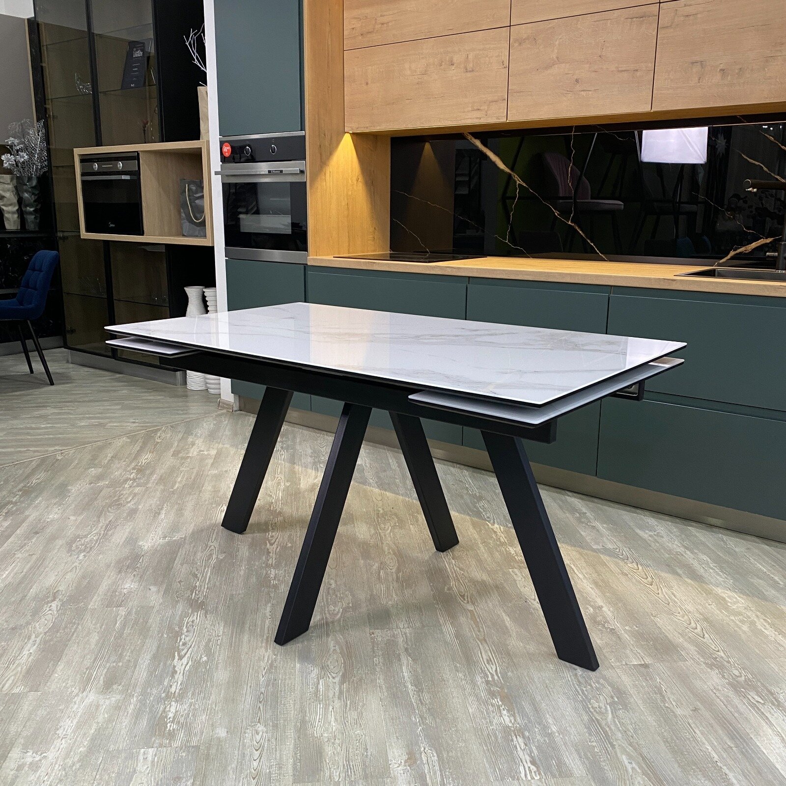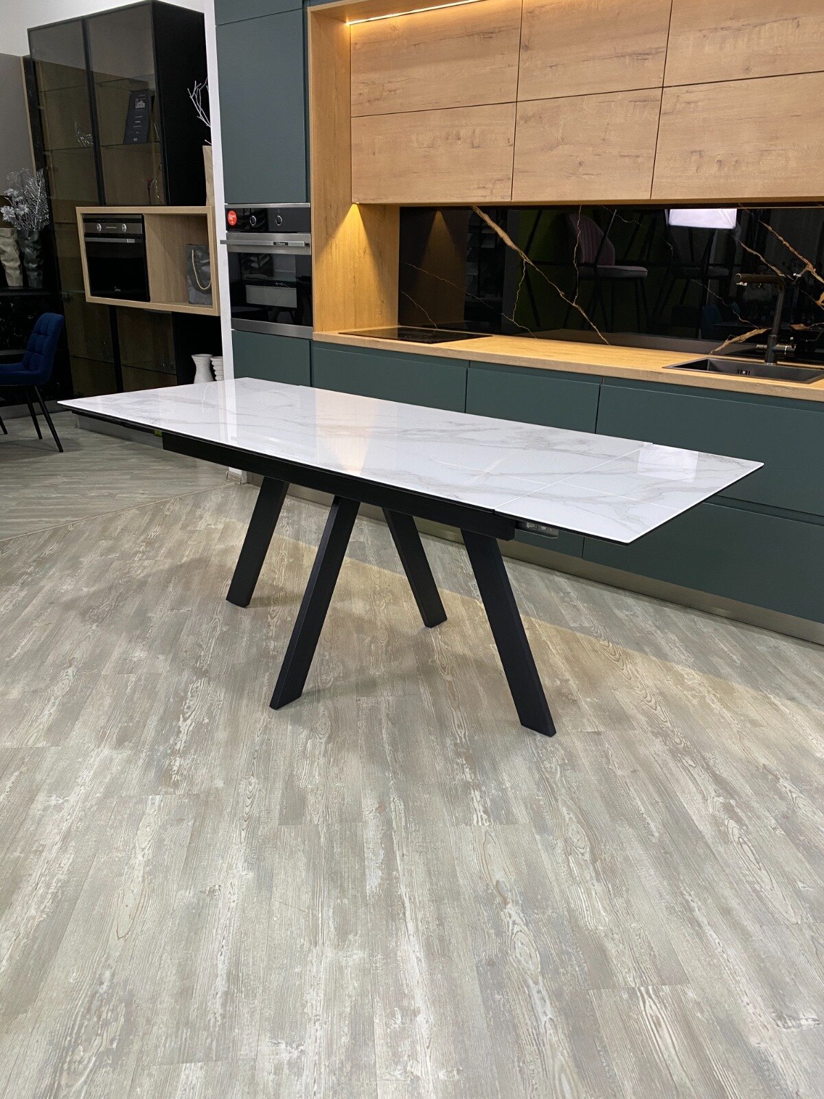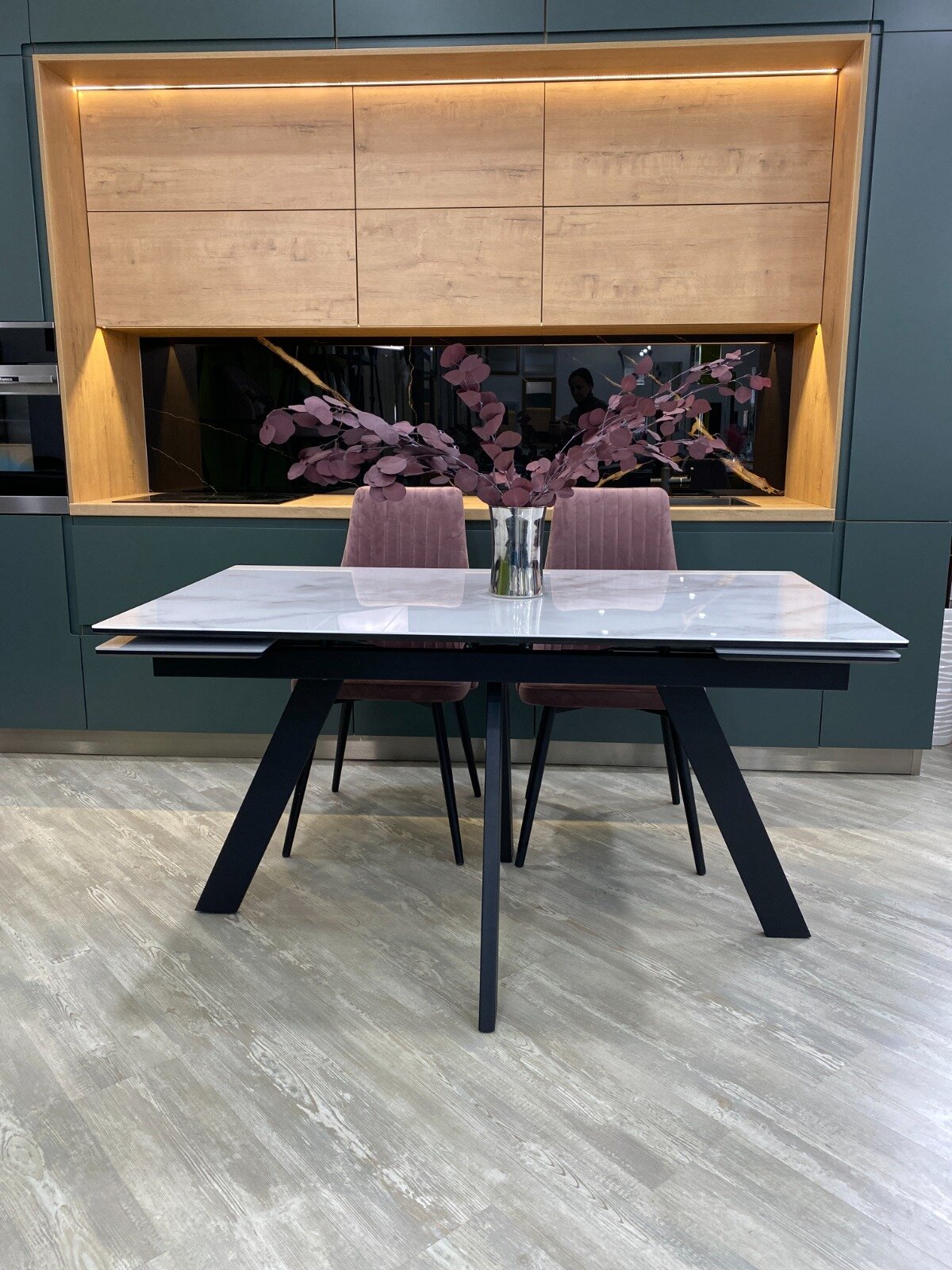 Стол обеденный раскладной НЕО-2 в стекле, белый мрамор, 140(200)х80 см интересное:
