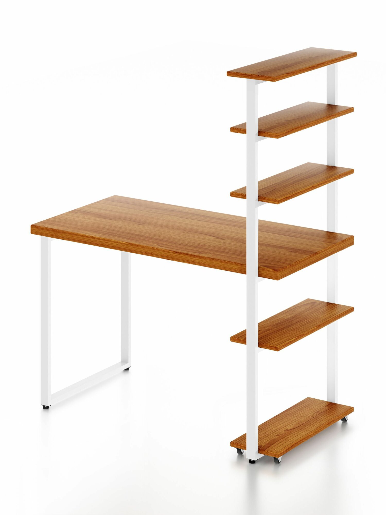 Стол компьютерный Loft с пятью полками, столешница цвета ольхи из массива сосны 40 мм и белые металлические ножки, 100х80х148 см