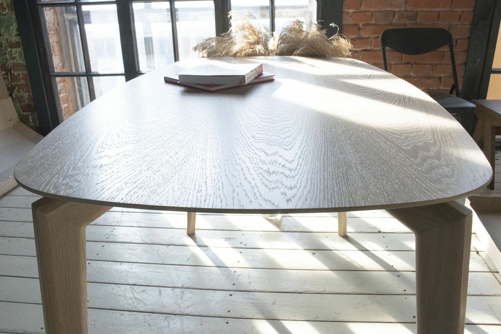 Стол кухонный Loft со столешницей из массива сосны 40 мм без шлифовки и покрытия, с черными металлическими Z-образными ножками, 140х80х75 см