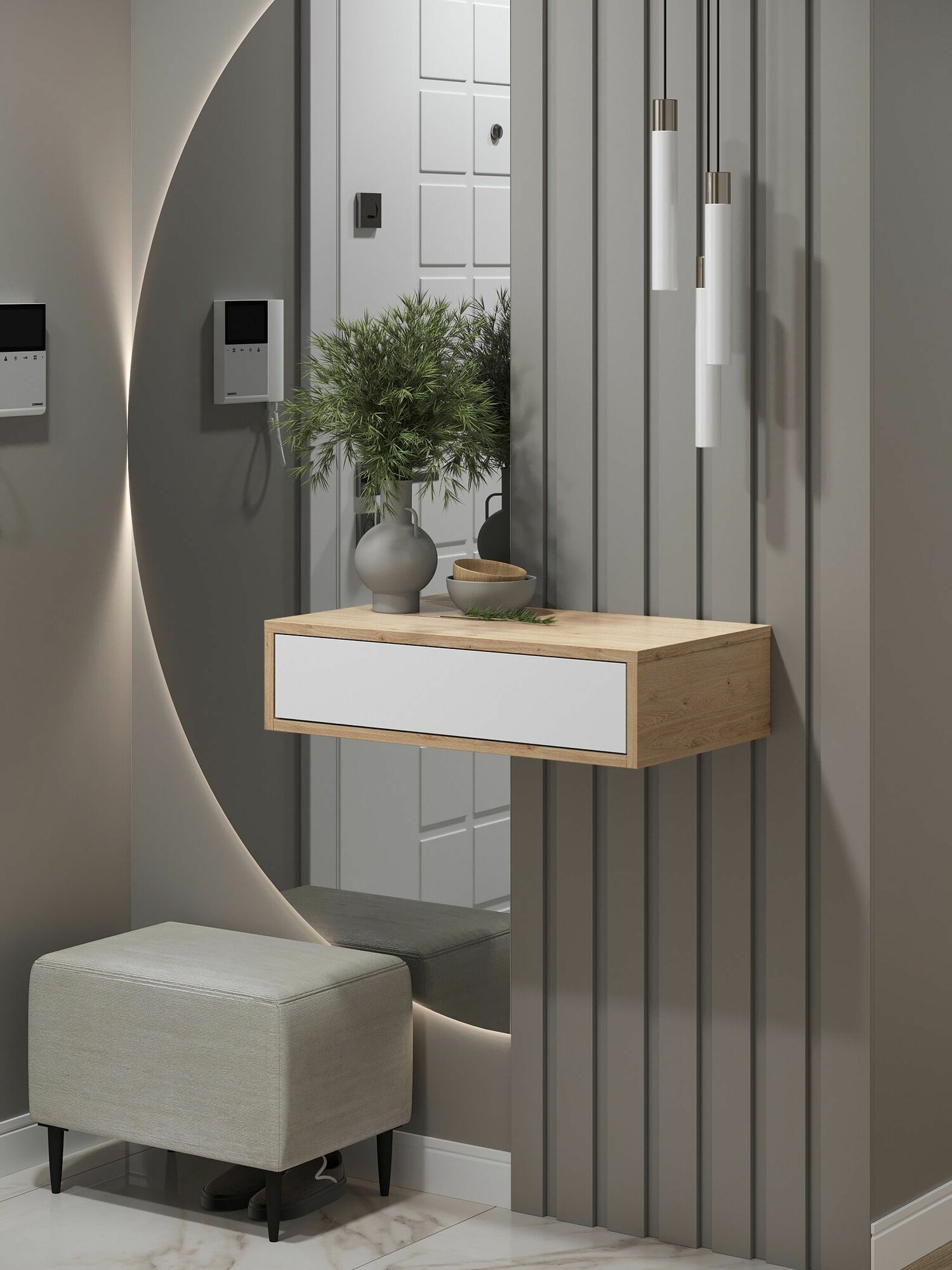 Туалетный столик цвет дуб-белый, ящик открывание push-to-open, модель Нью-Йорк,60х34х15 см интересное: