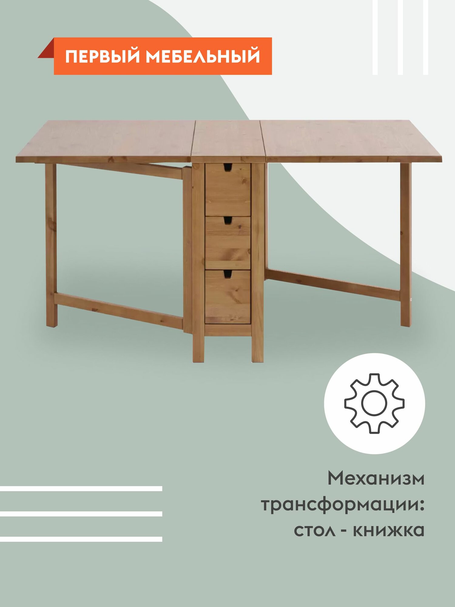 Стол-книжка кухонный, обеденный Мырпом раскладной, 26х80х74 см, Коричневый, массив сосны интересное: