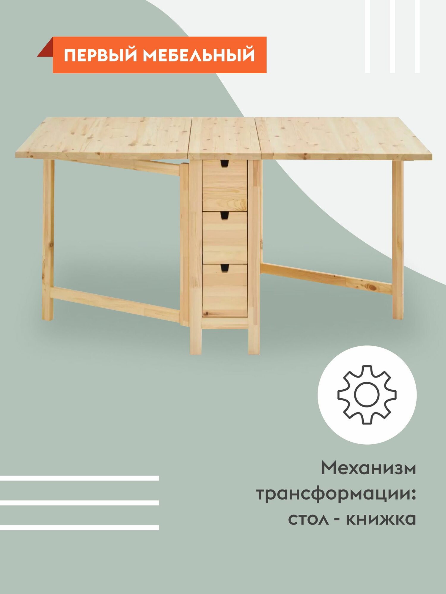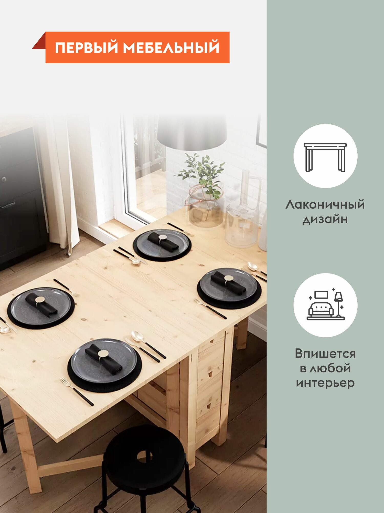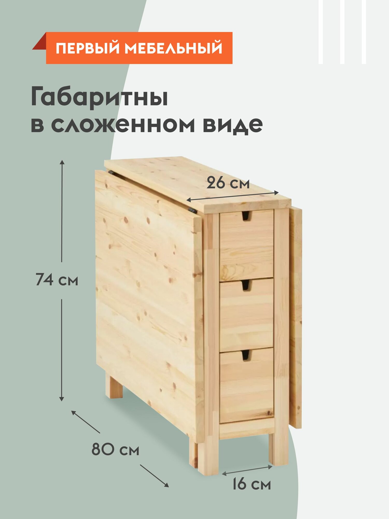 Стол-книжка кухонный, обеденный Мырпом раскладной, 26х80х74 см, Натуральный, массив сосны интересное: