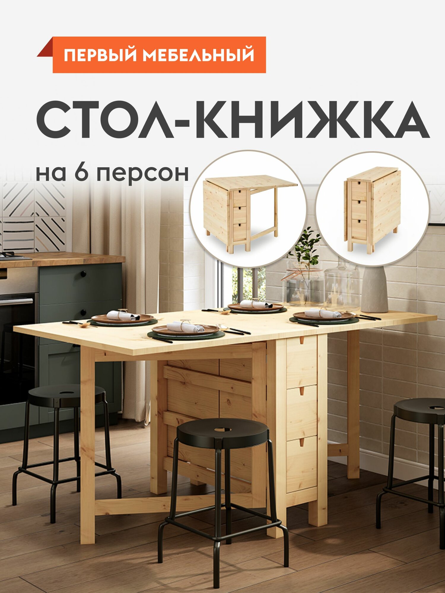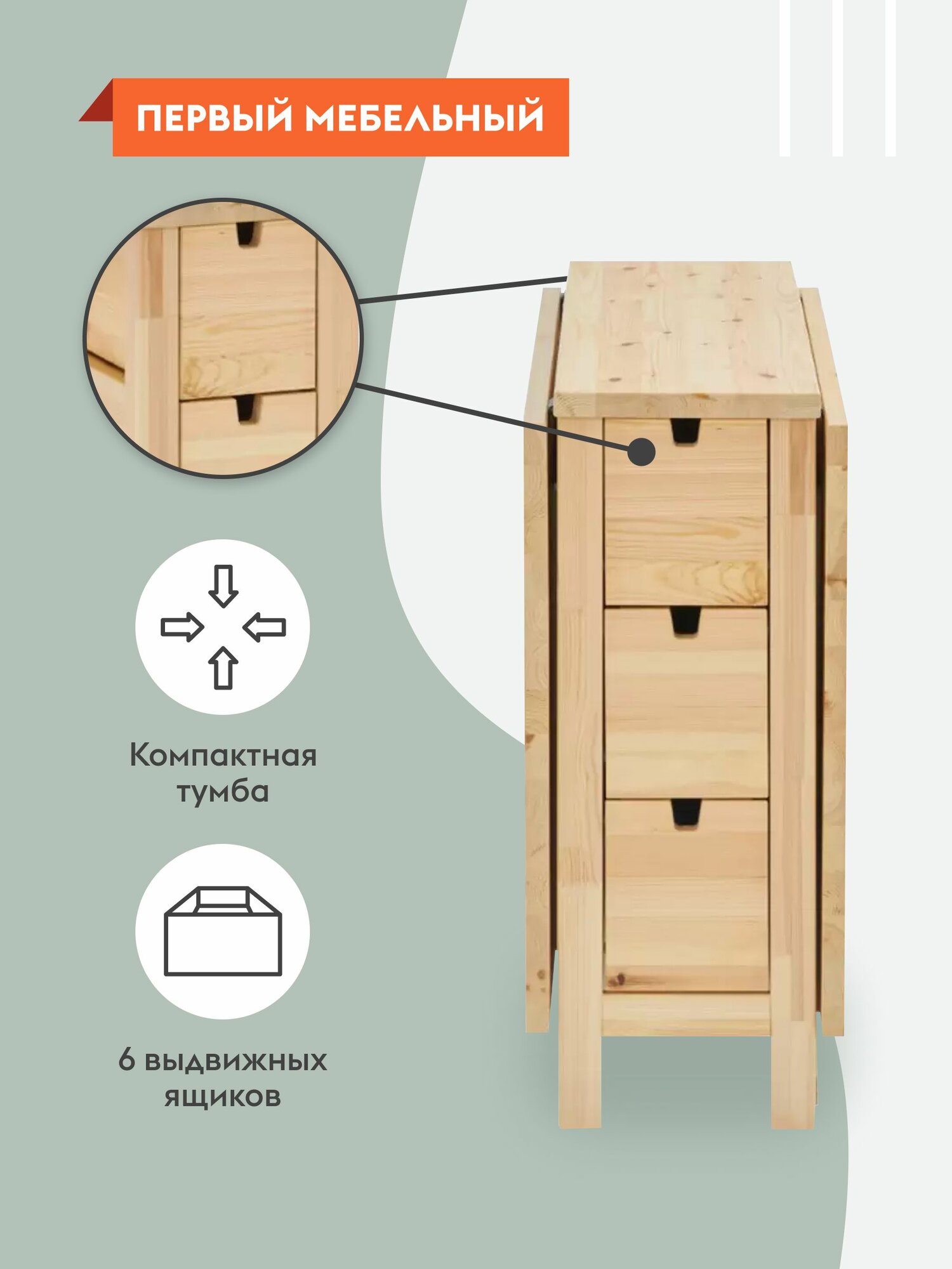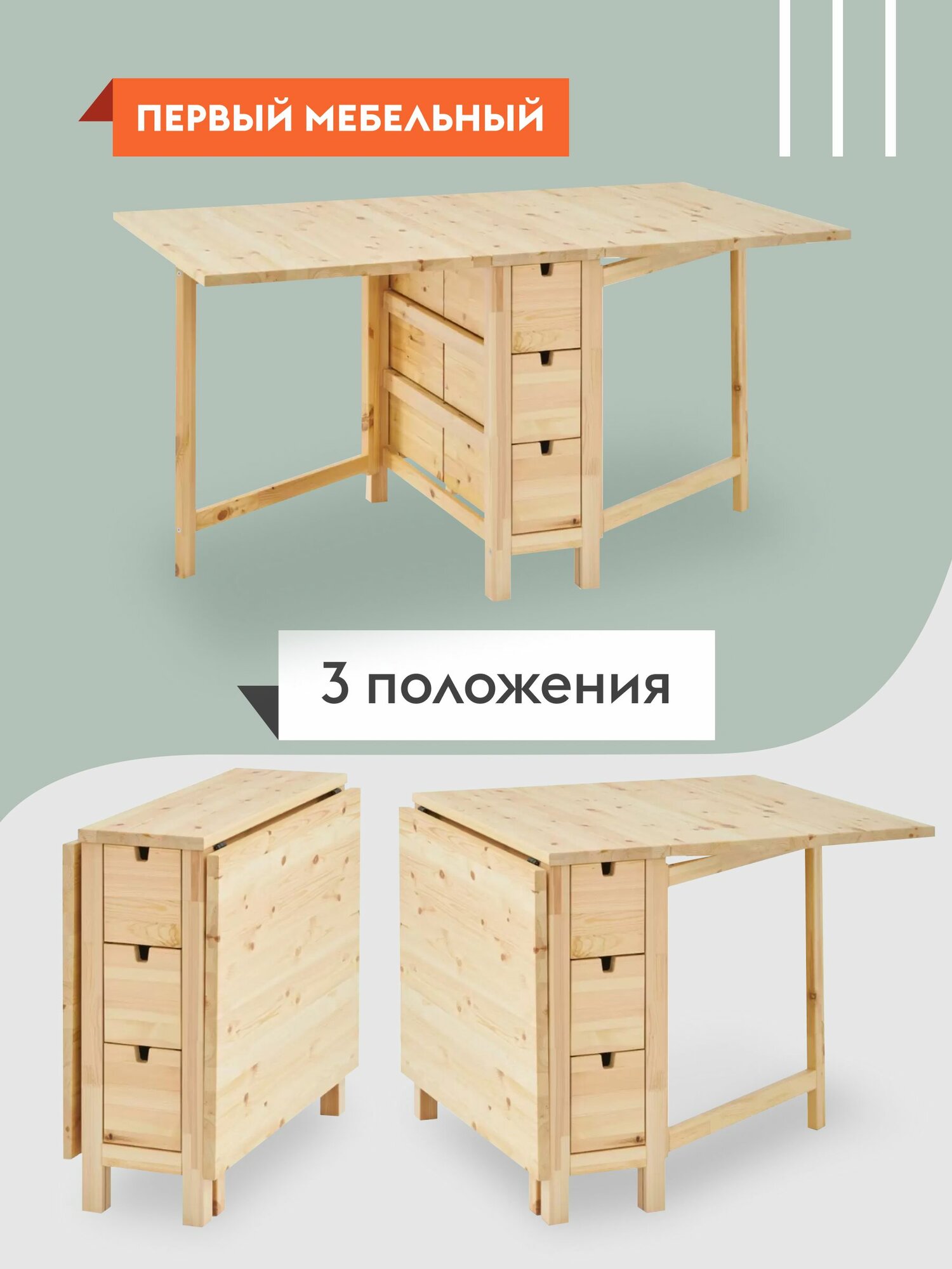 Стол-книжка кухонный, обеденный Мырпом раскладной, 26х80х74 см, Натуральный, массив сосны интересное: