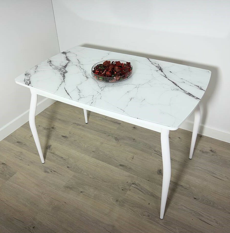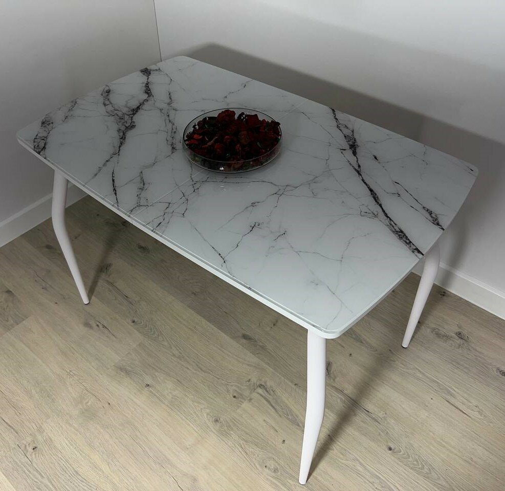 Стол обеденный Норд раздвижной, 110х 70 х 75 Мрамор Белый с черными опорами