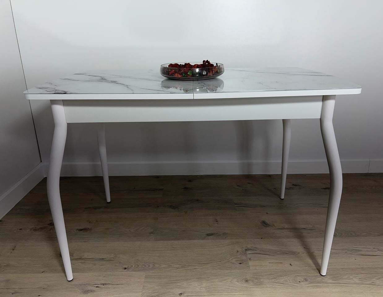 Стол обеденный Норд раздвижной, 110х 70 х 75 Мрамор Каррера с белыми опорами