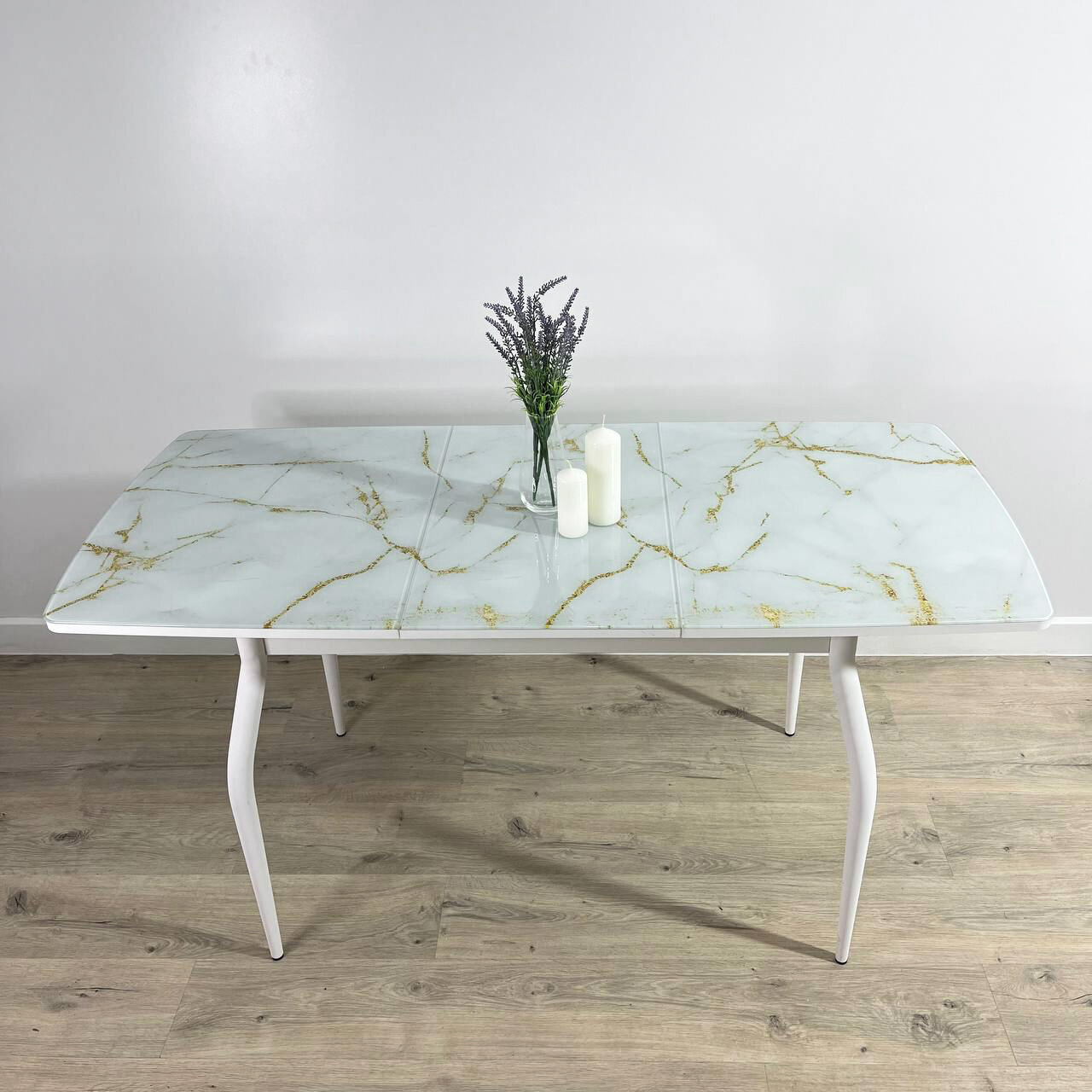Стол обеденный Норд раздвижной, 110х 70 х 75 Мрамор Белый с белыми опорами