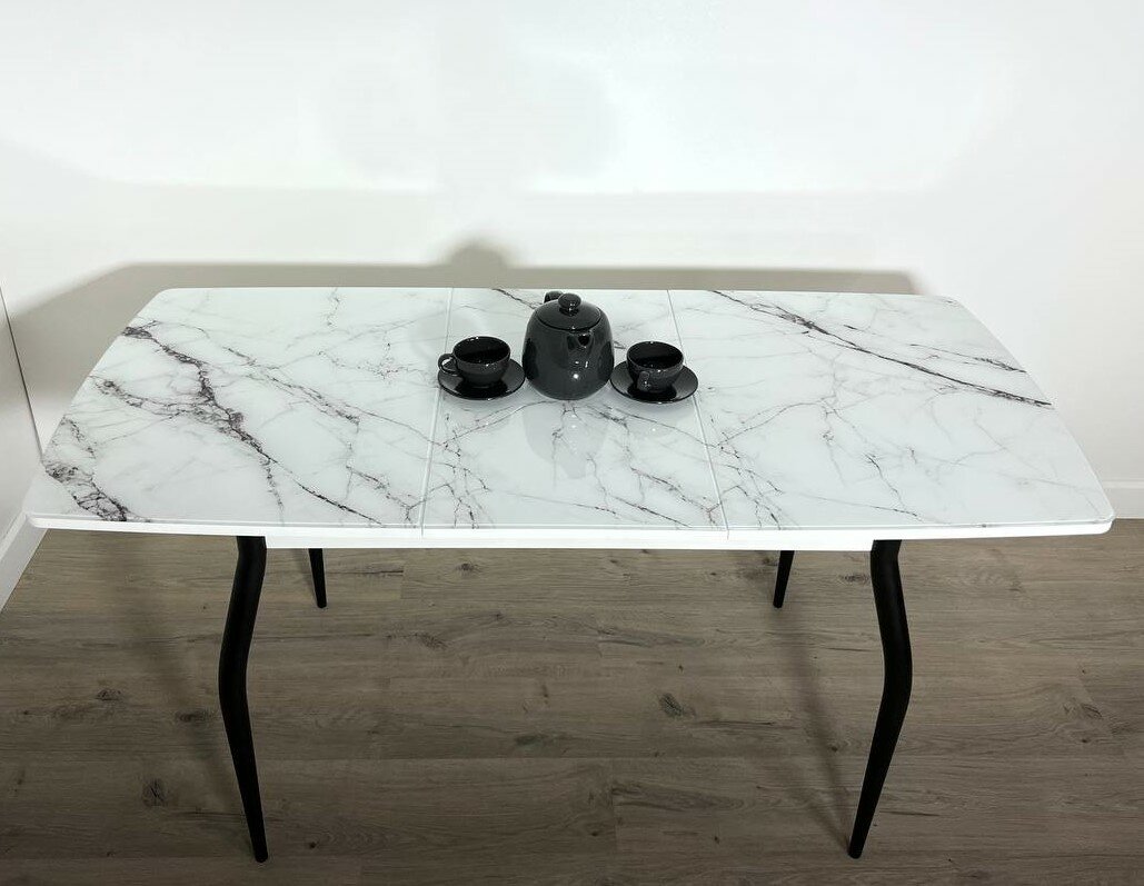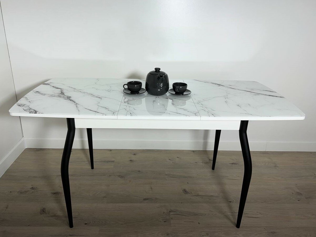 Купить Стол обеденный Норд раздвижной, 110х 70 х 75 Мрамор Белый с черными опорами