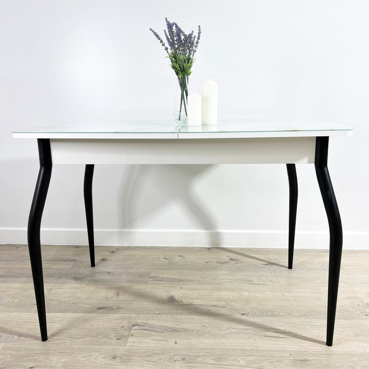 Стол обеденный Норд раздвижной, 110х 70 х 75 Мрамор Белый с черными опорами