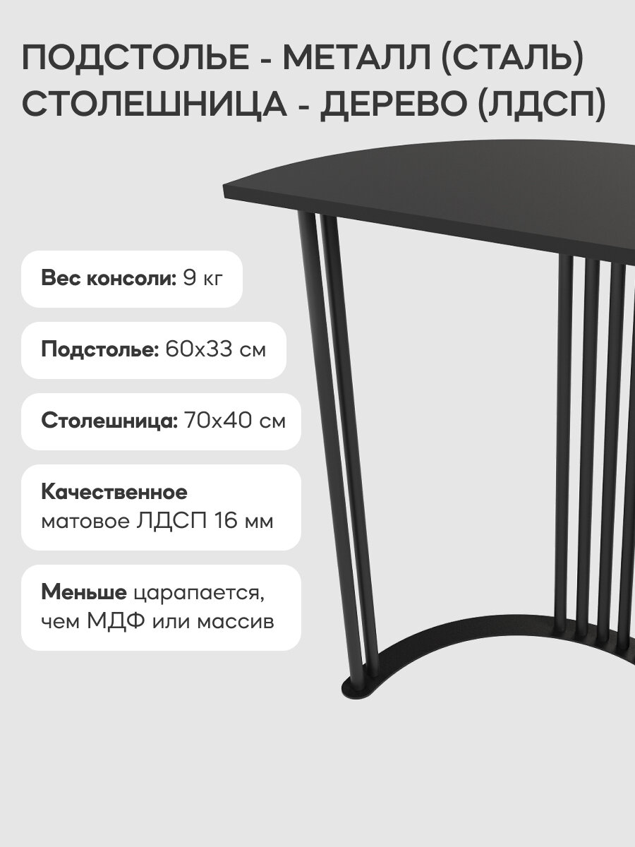 Купить GEN GROUP Столик консольный черный VIOLUR с металлическим подстольем, 70х40 см