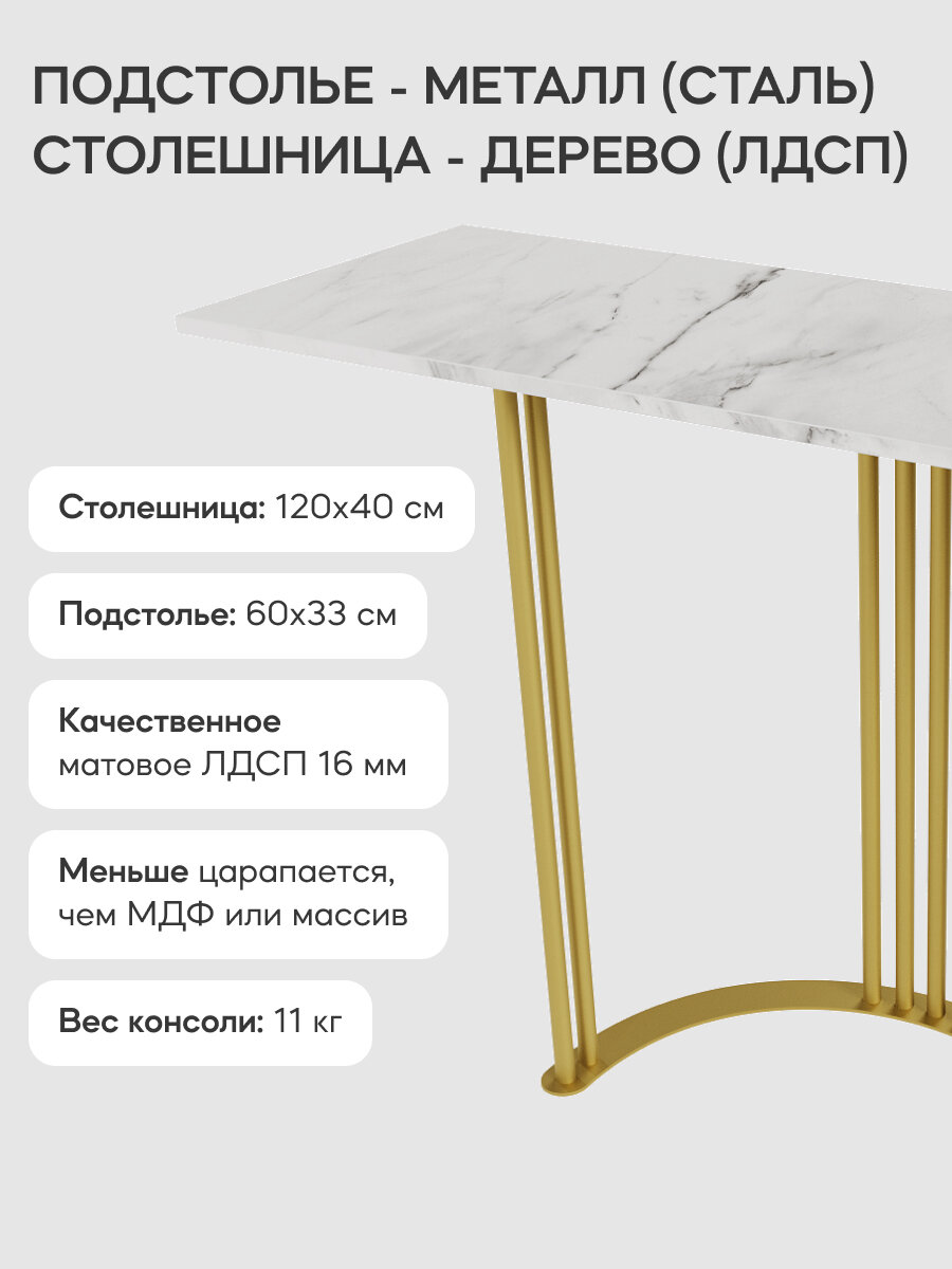Купить GEN GROUP Столик консольный белый мрамор VIOLUR, 120х40 см с золотым подстольем