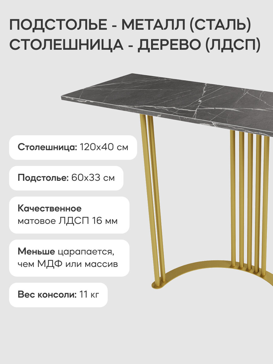 СохранитьGEN GROUP Столик консольный черный мрамор VIOLUR, 120х40 см с золотым подстольем интересное: