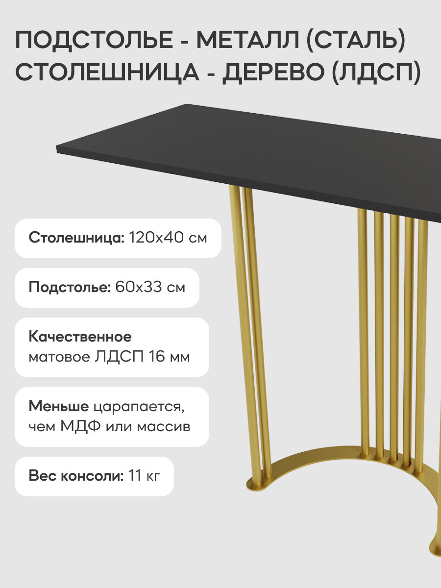 СохранитьGEN GROUP Столик консольный черный VIOLUR с золотым металлическим подстольем, 120х40 см интересное: