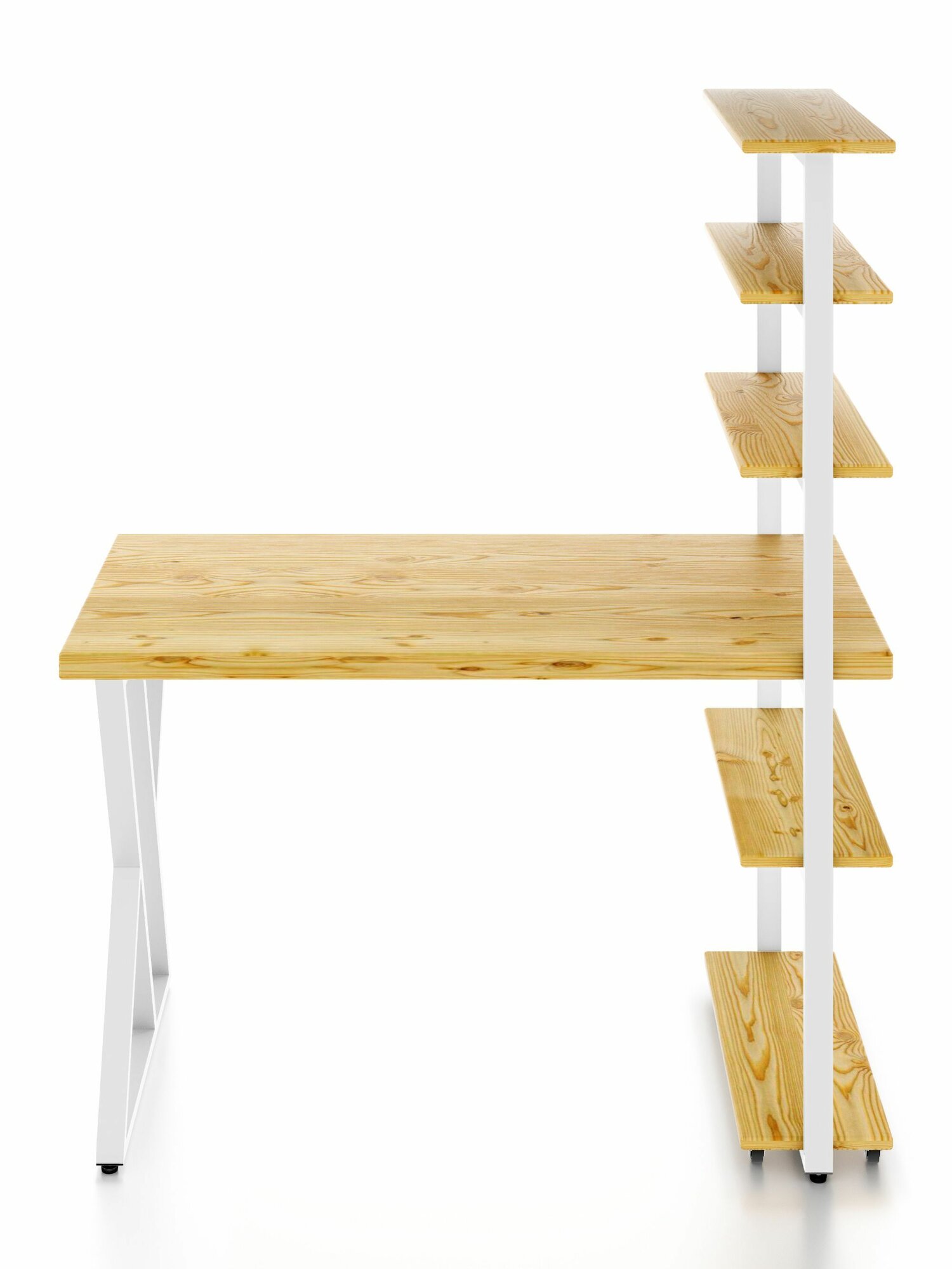 Стол компьютерный Loft с пятью полками, лакированная столешница из массива сосны 40 мм и белые металлические Z-образные ножки, 110х60х148 см