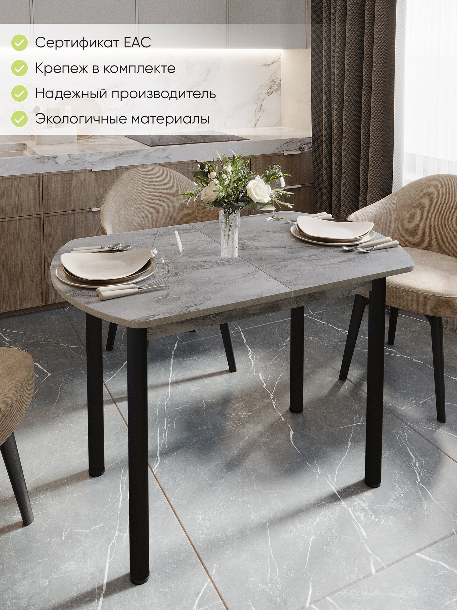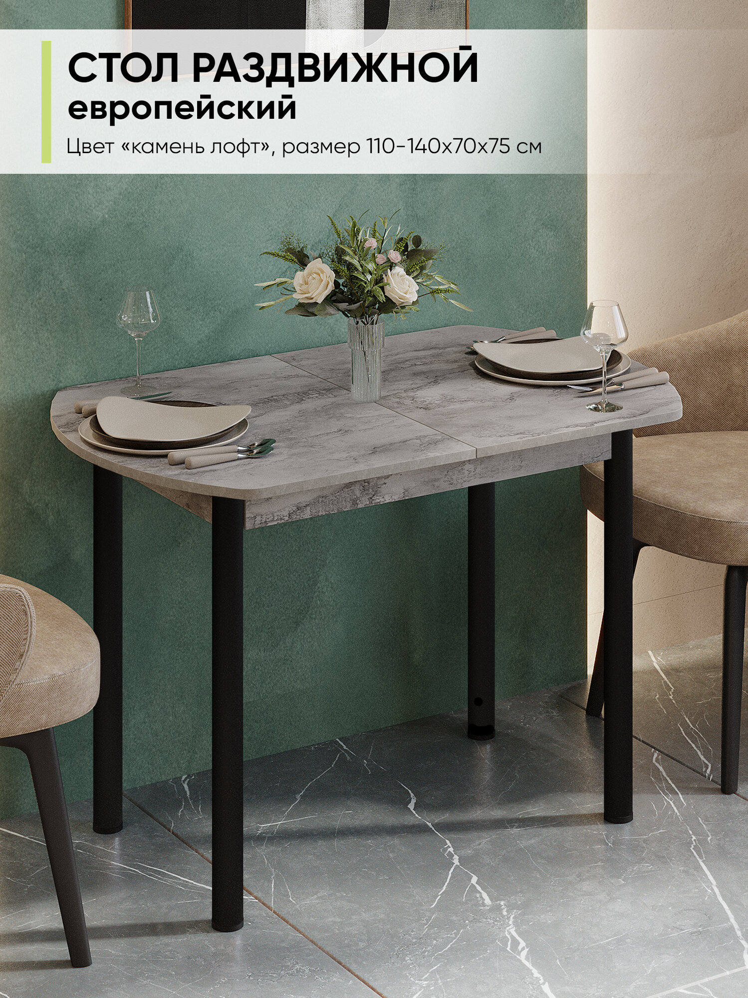 Стол кухонный обеденный раздвижной Европейский, Айрон рок, ЛДСП, 110-140х70х75 см