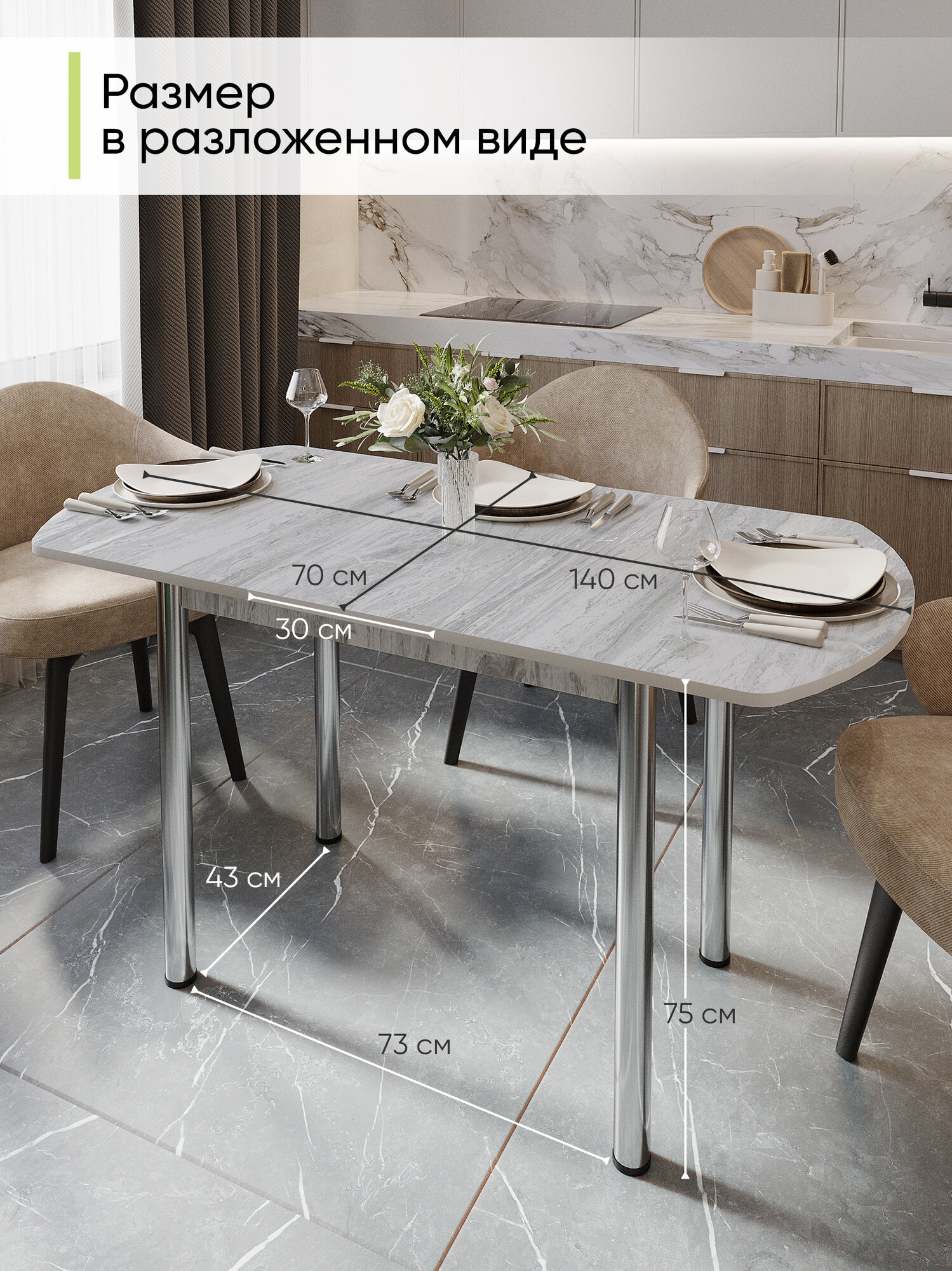 Купить Стол кухонный обеденный раздвижной полу-овальный Европейский, Кайлас, 110-140х70х75 см