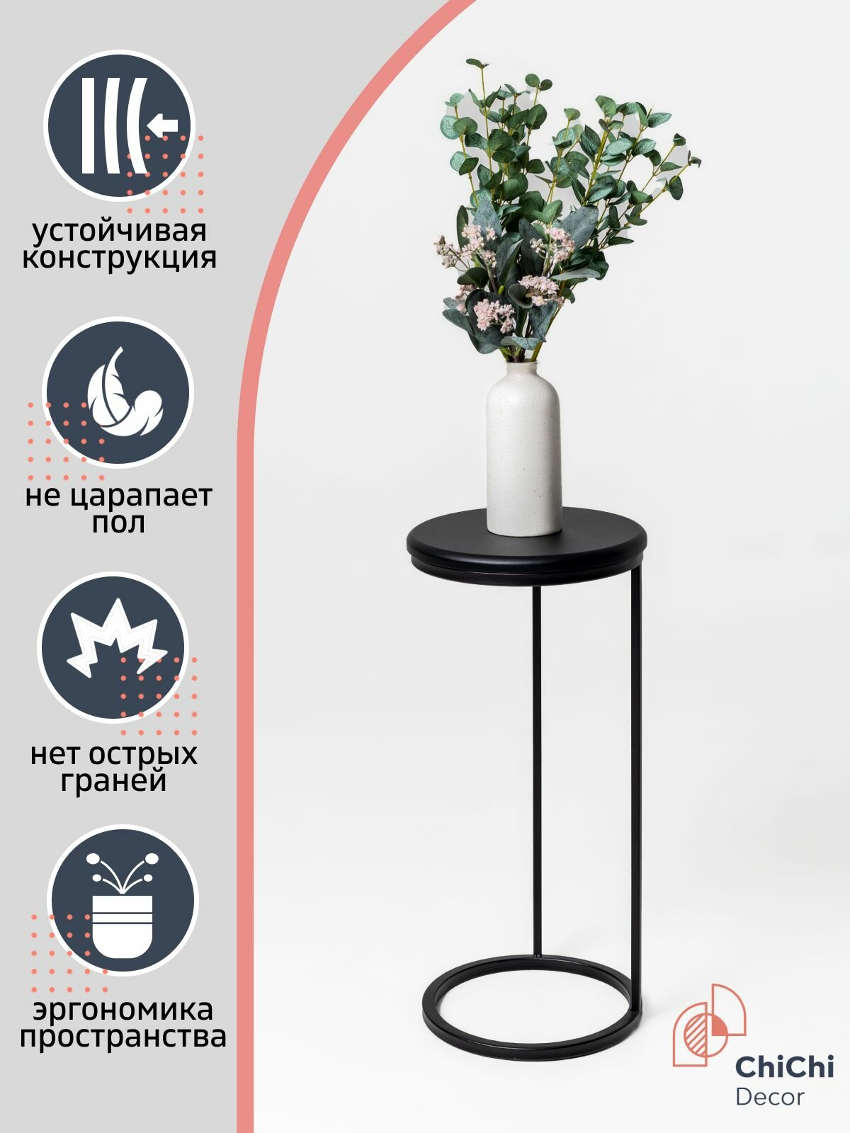 Приставной столик лофт интерьерный придиванный журнальный, EASY, черный, 57х26х26 см, ChiChi Decor интересное: