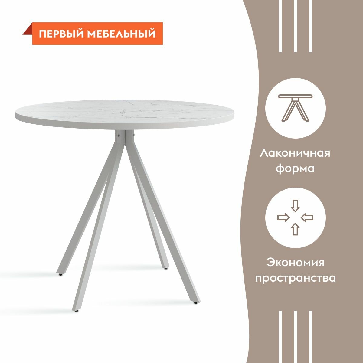 Кухонный стол Смайл круглый, на ножках, 90х90х74 см, Белый мрамор / Белый, металл интересное:
