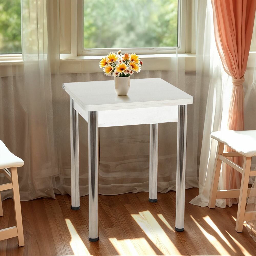Стол обеденный, кухонный, раскладной, 60х60 (120)х75 см, Бетон белый